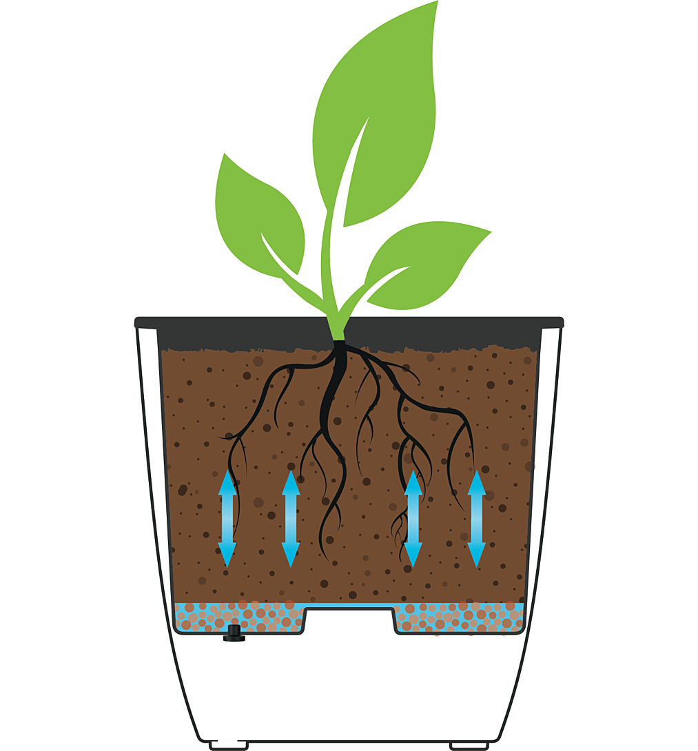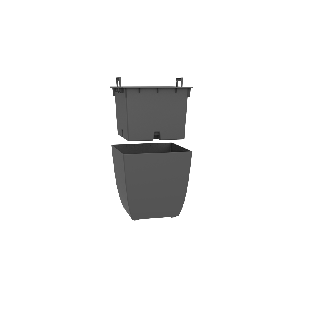 CARRE "DIVA BASALT" Avec bac intérieur amovible & zone de rétention d'eau Dim.43,5 x 43,5 x 44,2 cm