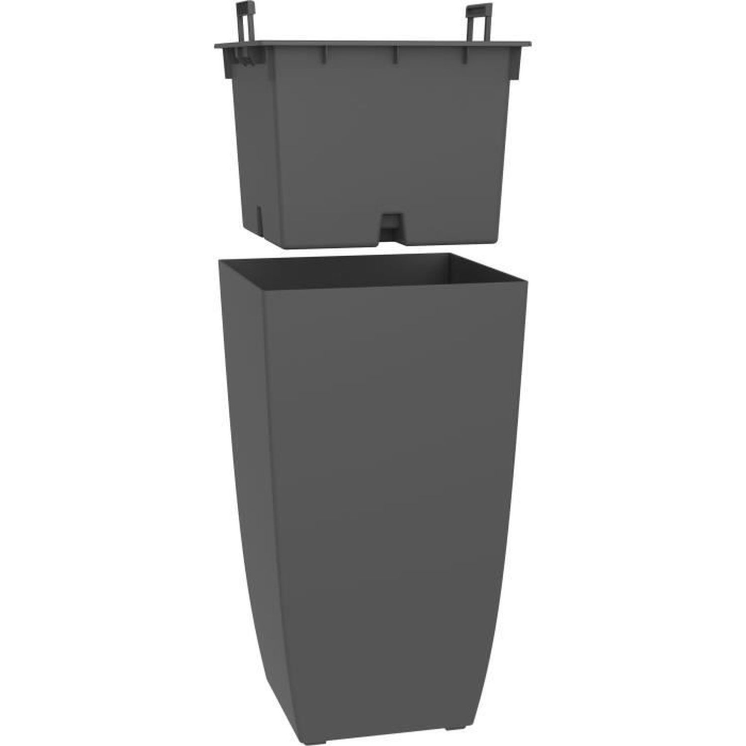 CARRE HAUT "DIVA STONE" Avec bac intérieur amovible & zone de rétention d'eau Dim.43,5 x 43,5 x 78,2 cm