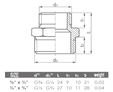 1/2" x3/8" Mâle Raccords Tuyauterie Réduction Syndicat Laiton