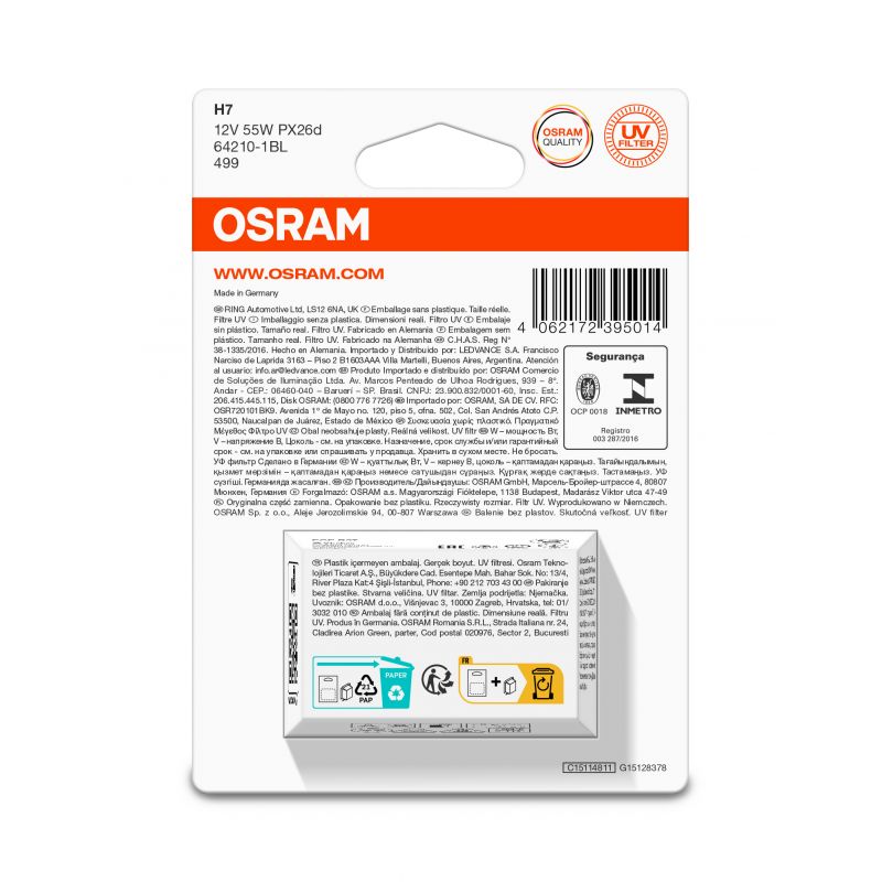 | Libellé | 1 Ampoule halogène auto Osram ORIGINAL H7 12V 64210-1BL |