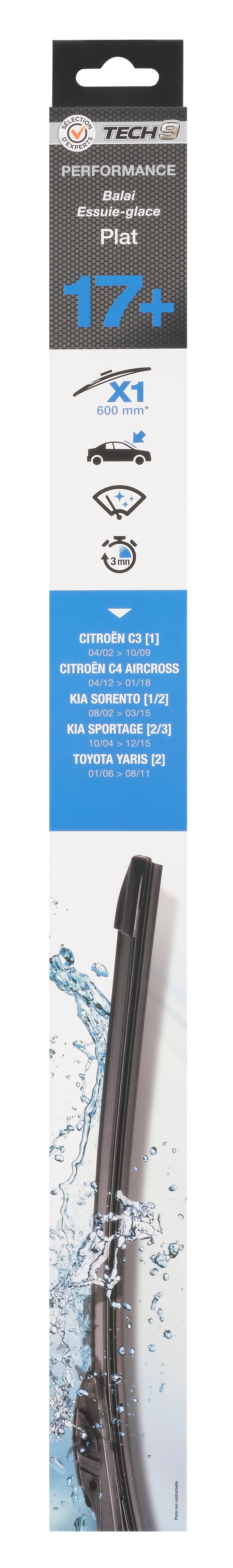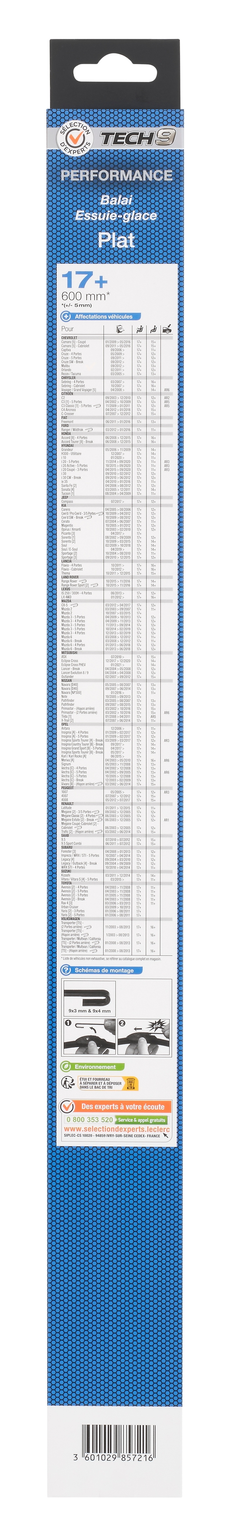 1 balai d'essuie-glaces adaptable 17+ - Sélection d'Experts - Tech9
