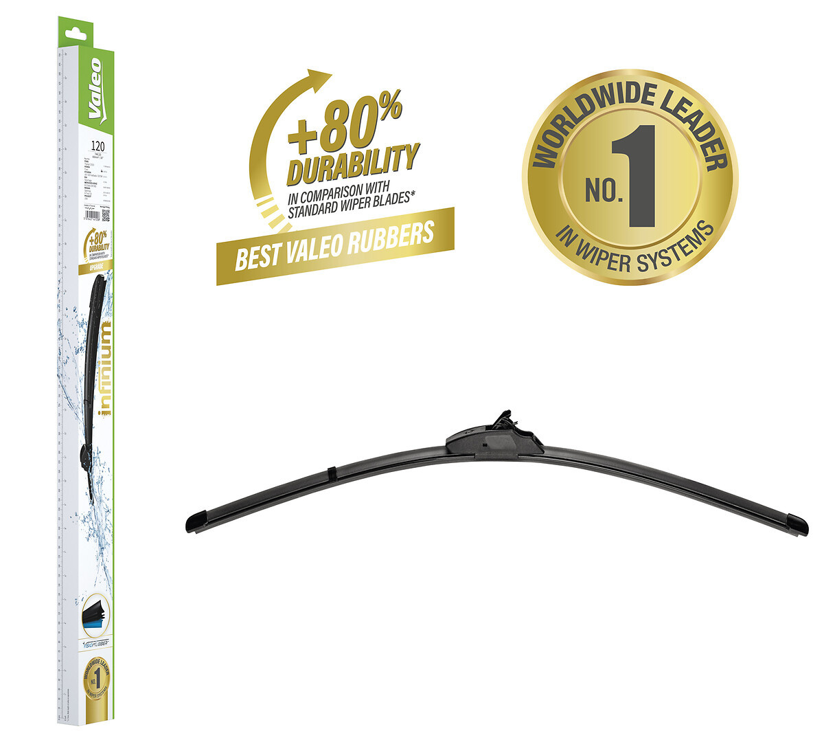 "Les balais d'essuie-glace Valeo Infinium assurent une durabilité d'essuyage accrue pour un maintient de la performance dans le temps. Valeo a développé et utilisé ses meilleurs caoutchoucs afin d'offrir une excellente qualité d'essuyage et garantir : - Une durabilité améliorée sous toutes conditions climatiques - Une performance optimisée"