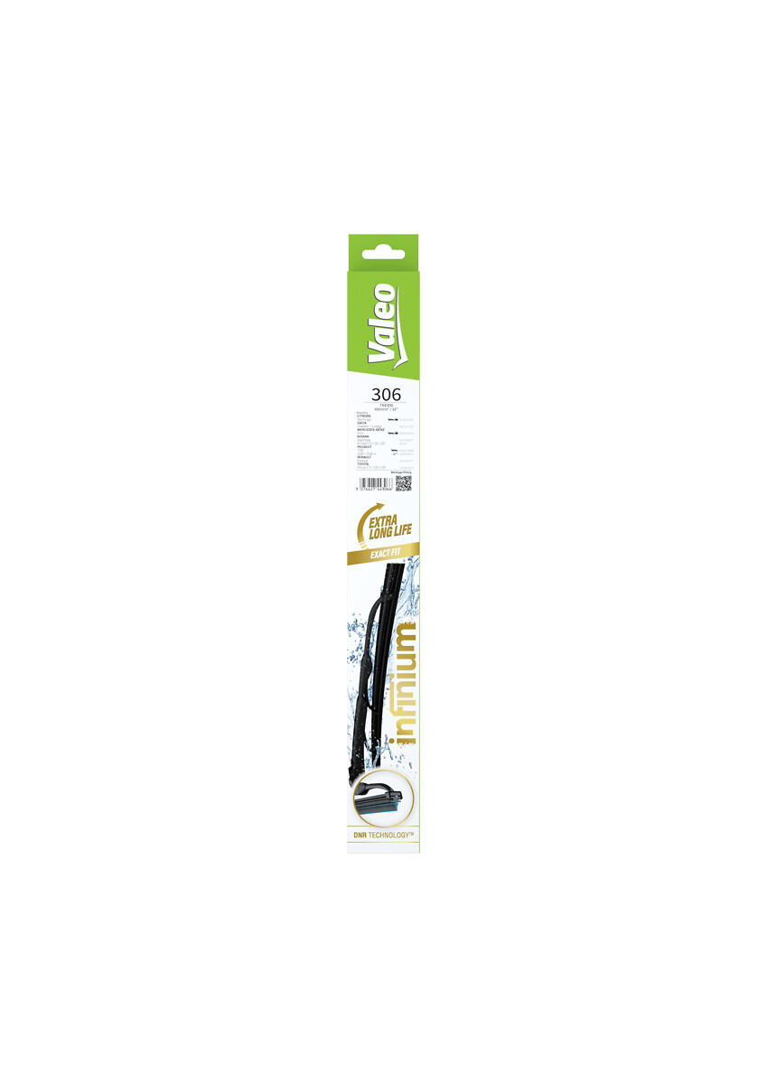 "Les balais d'essuie-glace Valeo Infinium assurent une durabilité d'essuyage accrue pour un maintient de la performance dans le temps. Valeo a développé et utilisé ses meilleurs caoutchoucs afin d'offrir une excellente qualité d'essuyage et garantir : - Une durabilité améliorée sous toutes conditions climatiques - Une performance optimisée"