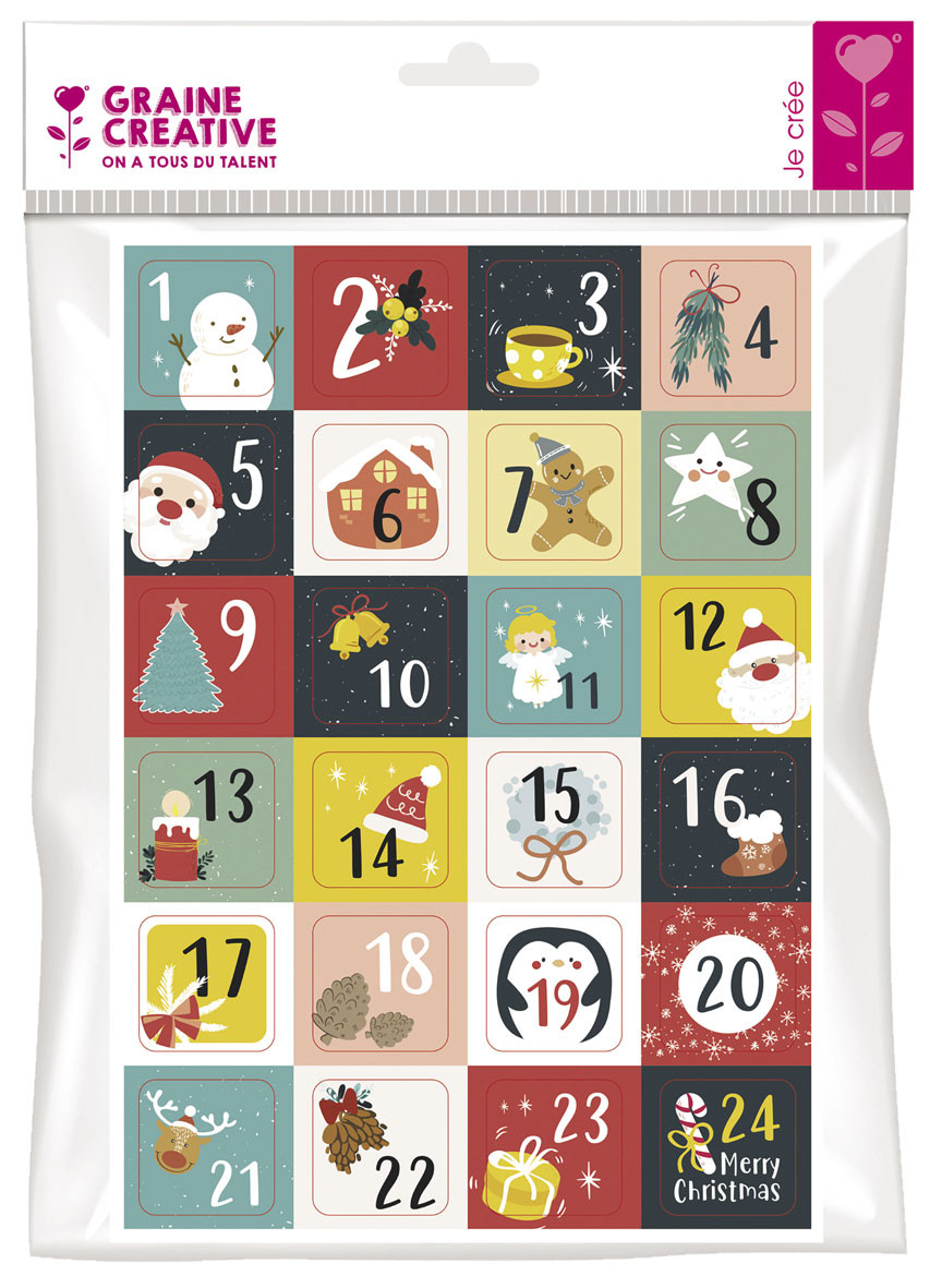 1 Planche A4 - 24 Stickers De L'Avent