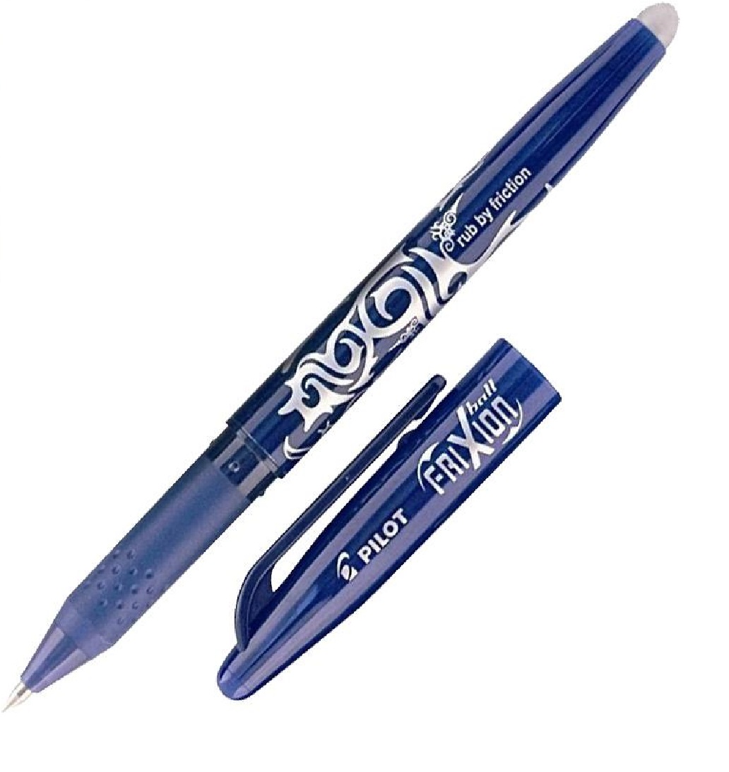 Stylo roller effacable Pilot frixion bleu - Roller encre gel effaçable FRIXION bleu. Ecriture moyenne, bille 0,7mm. Il écrit, efface et réécrit. Effaçage par frottement de l'embout. Grip caoutchouc. Grande douceur d'écriture, idéal pour l'école