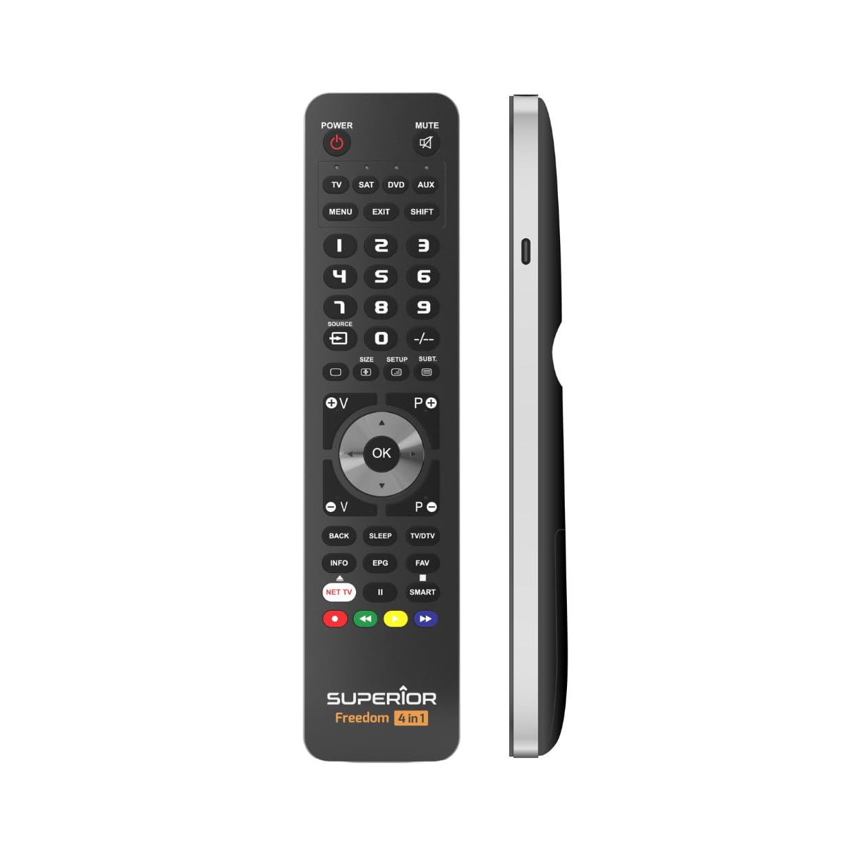 Télécommande pour 4 appareils TV, SAT etc avec cordon programmateur intégré- Noire