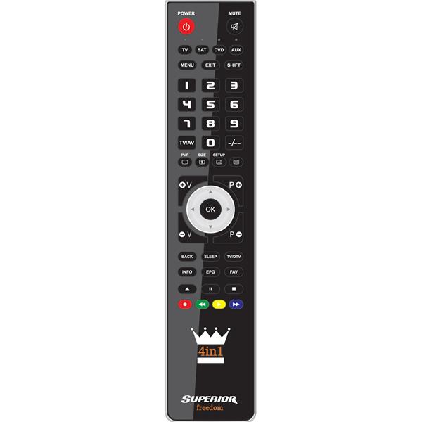 Télécommande pour 4 appareils TV, SAT etc avec cordon programmateur intégré- Noire