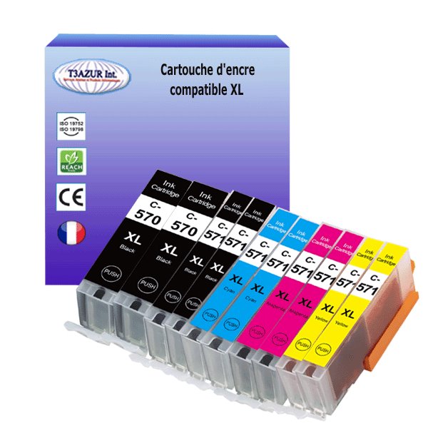 | Libellé | 10 Cartouches compatibles avec Canon Pixma MG6852, MG6853, MG7750, MG7751, MG7752, MG7753 remplace Canon PGI-570, CLI-571 XL - T3AZUR |