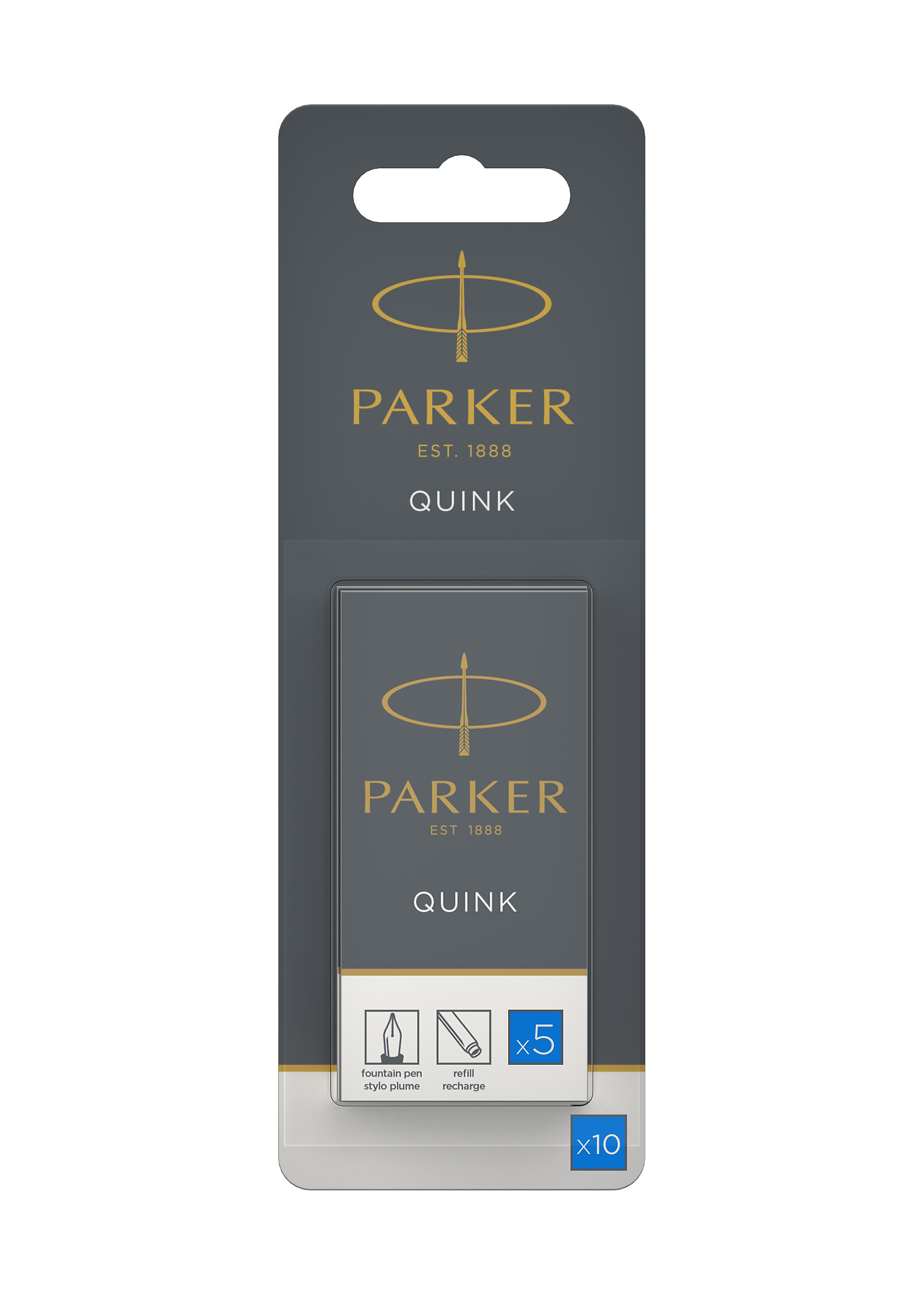 Parker cartouches d'encre pour stylo plume | longue | encre bleue effaçable QUINK | Lot de 10 (emballage blister) Cartouches d'encre spécialement conçues pour les stylos plume PARKER
