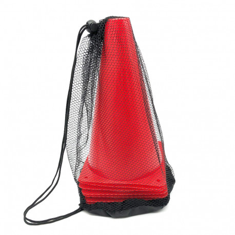 Polyvalents, ces cônes s'utilisent pour délimiter des zones de marquage, créer des slaloms, mesurer des distances d'agilité ou structurer des ateliers techniques. Le kit inclut une housse de rangement compacte pour transporter et stocker les cônes sans encombrement, ce qui simplifie l'organisation des entraînements en club, au parc ou dans votre jardin.