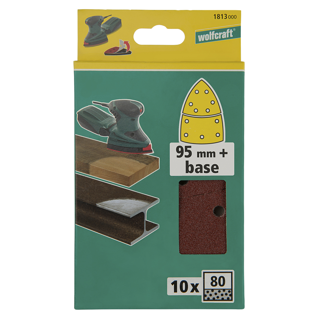 | Libellé | 10 patins abrasifs en deux parties corindon grains 80 delta 95 mm auto-agrippants perforés |