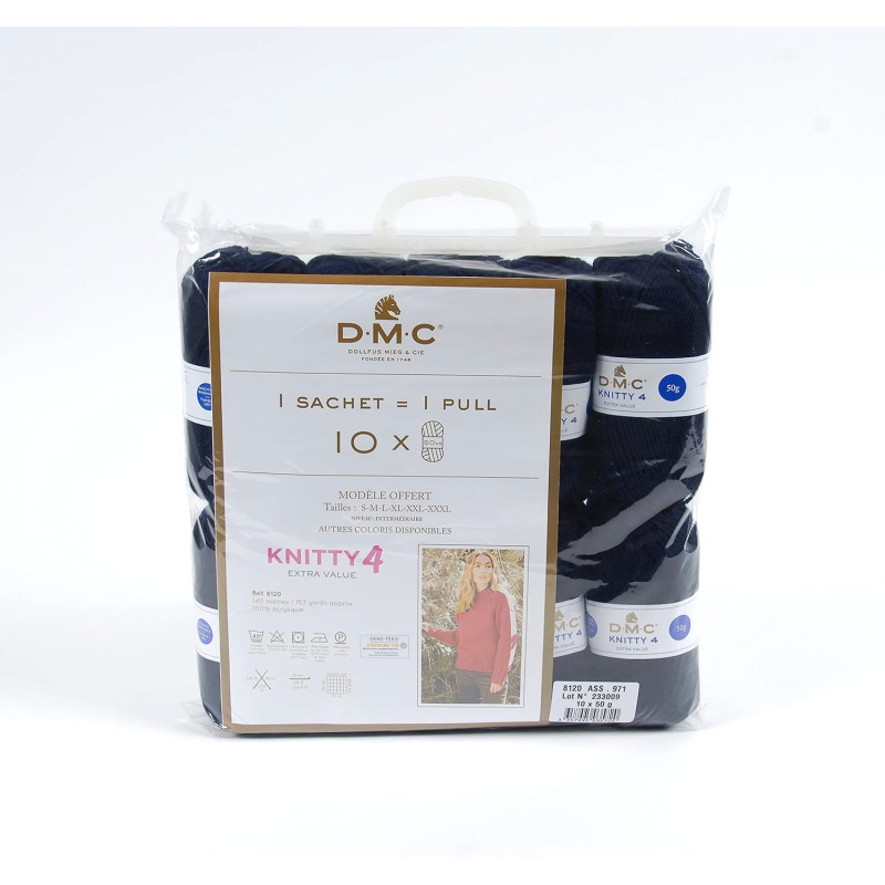 | Libellé | 10 pelotes - 100% acrylique - Marine - 971 - 50g - 140m - DMC - Knitty 4 - Tricot |