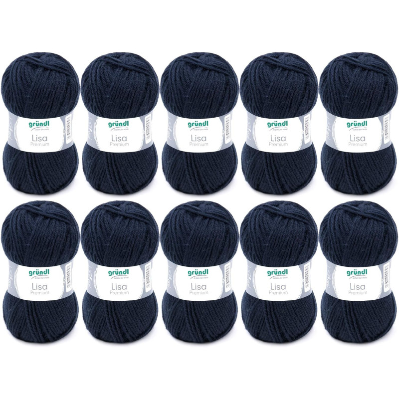 10 pelotes de laine - Bleu marine - 19 - 100% acrylique - 3,5/4,5 mm - Gründl - Lisa Premium