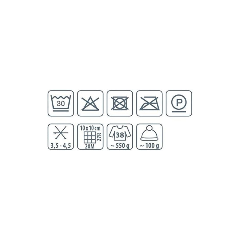 Avec une longueur d'environ 133 mètres par pelote, cette laine offre une bonne autonomie de travail et convient parfaitement aux ouvrages du quotidien. L'échantillon de 19 mailles x 26 rangs garantit un rendu homogène et équilibré, idéal pour obtenir des pièces régulières et bien structurées. La taille d'aiguilles recommandée 3,0 à 4,0 mm permet un travail fluide, rapide et agréable.
