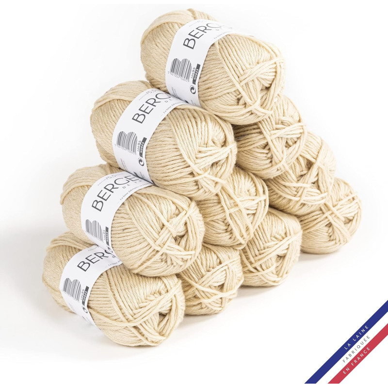 | Libellé | 10 pelotes de laine - Sable - 50% Laine mérinos 50% acrylique - Bergère de France - Image |