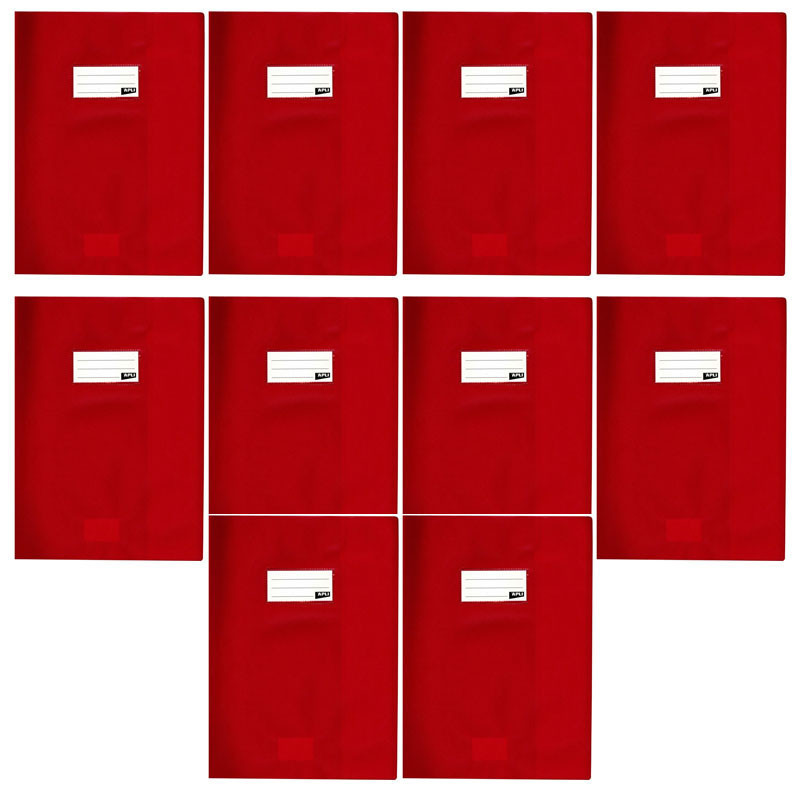 | Libellé | 10 protège-cahiers opaque rouge en PVC – Format 24x32 cm – Épaisseur 19/100ème – Grain cuir |