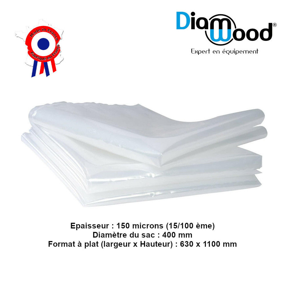 | Libellé | 10 Sacs de Récupération à Copeaux et Poussières de Bois D. 400 mm x L. 1100 mm x ép. 150 Microns en - Diamwood |