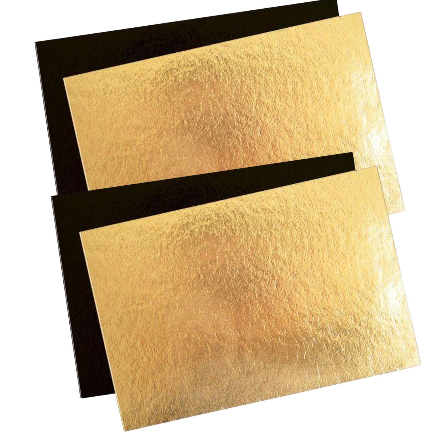 2 kits de 5 supports fins pour présenter vos pâtisseries, parfaits pour les gâteaux rectangulaires. D'une épaisseur de 1 mm, ces supports sont réutilisables et ingraissables. Chaque support dispose de 2 faces : l'une dorée, et l'aurtre noire. Dimensions: 20 x 30 cm.