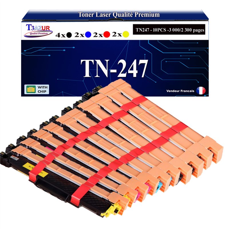 10 Toners compatibles avec TN247 (Noir+Couleur) - 3000 pages + 2300 pages - T3AZUR