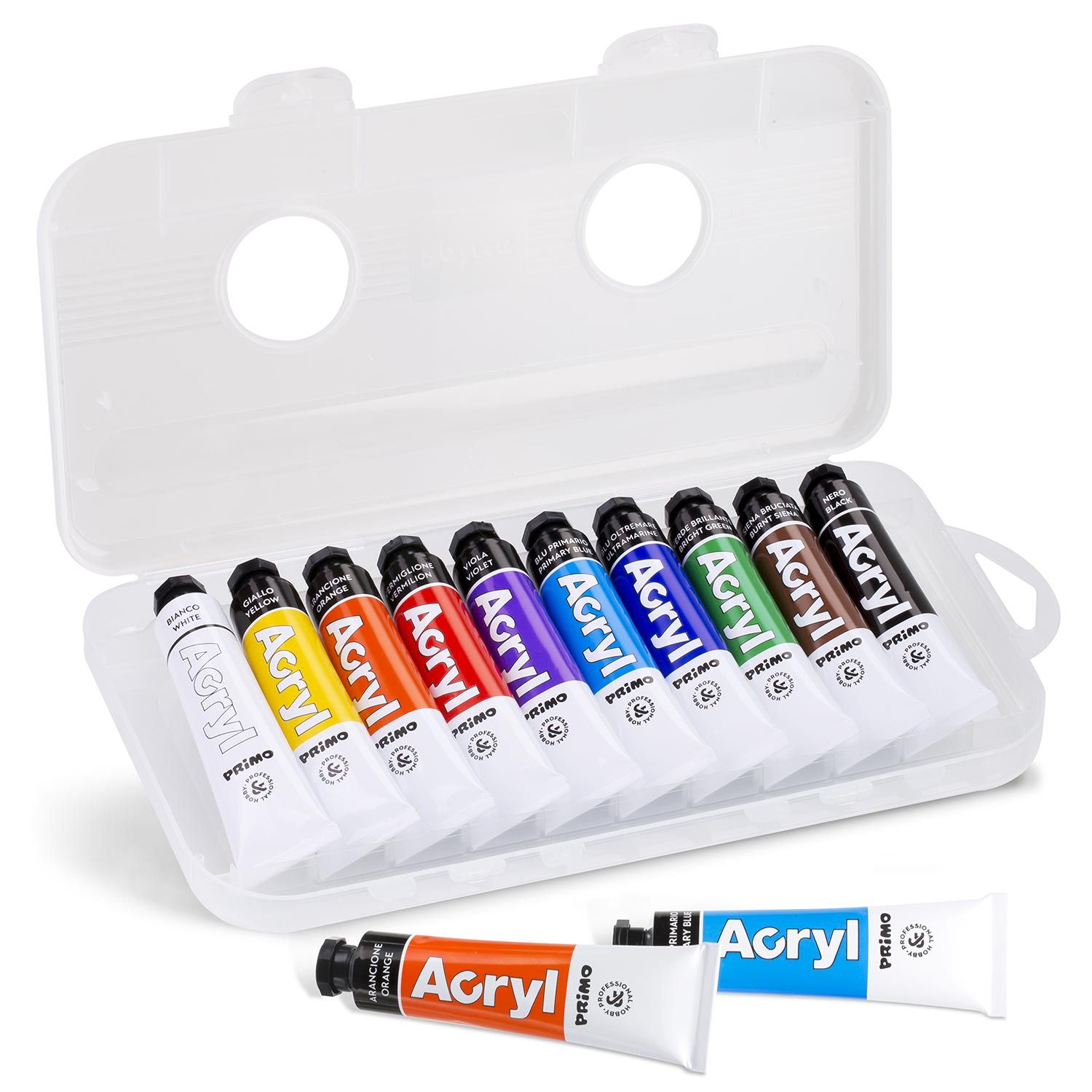 Pratique et complète, cette boîte de 10 tubes de peinture acrylique fine de 18 ml vous accompagnera partout ! Peinture très pigmentée à base d'eau, très couvrante. Elle est facile à étaler, agréable au toucher et résistante, les couleurs sont vives et lumineuses. Elle peut être fixée avec un vernis acrylique afin de lui donner plus de résistance, durée et luminosité. Elle est compatible avec les autres produits à l'eau de la gamme Morocolor. Nettoyer les taches sur textiles tout de suite, car une fois sèche, la peinture devient permanente. La peinture est utilisable sur n'importe quel support en toutes les techniques de peinture. S'applique facilement pure ou diluée avec de l'eau pour le rendre plus fluide. Fabrication : Italie. Dimensions : 12,6 x 26,5 x 2,6 cm.