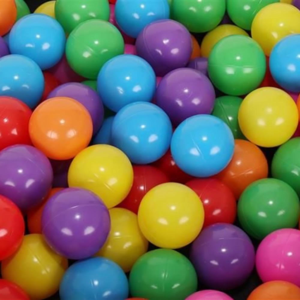 100 balles multicolores à déverser dans la piscine ou la tente à balles pour encore plus d’amusement ! Utilisation : En intérieur ou en extérieur , au sol ou dans l'eau Diamètre d’une balle : 5 cm