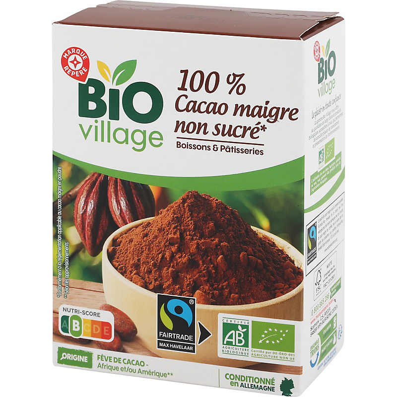 Cacao maigre en poudre issu de l'agriculture biologique BIO VILLAGE