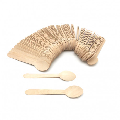 100 Cuillères en Bois Jetables 34 x L. 160 mm, Recyclable, Biodégradable 100% Ecologique - 997070 - Beast