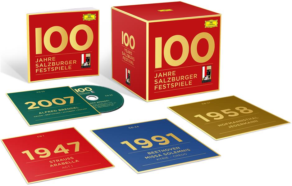 A l'occasion du centenaire du prestigieux festival de Salzbourg cette année, Deutsche Grammophon célèbre la riche histoire de l'institution à travers une nouvelle édition spéciale en édition limitée. Une rétrospective bien plus large et plus complète que celles dédiées par le passé au plus grand festival de musique classique au monde, cette édition en 58 CD passe en revue plus de sept décennies (1947-2016) de son histoire, à travers des enregistrements répartis en quatre chapitres dans un ordre chronologique : opéras, concerts, récitals et diction, comprenant des inédits et raretés (Symphonies Nos. 26 & 30 de Mozart par Bernhard Paumgartner, un enregistrement de "Jedermann" de 1958 ou Orfeo ed Euridice de Gluck par Karajan de 1959).