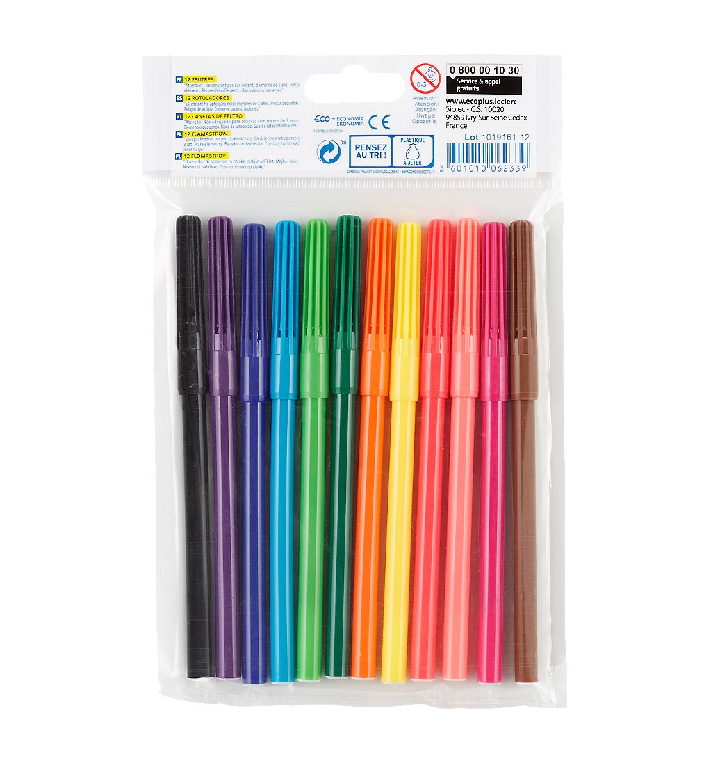 | Libellé | 12 feutres de coloriage pointes moyennes - Eco+ |