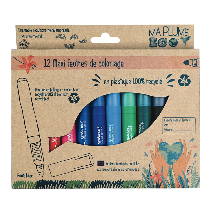 | Libellé | 12 gros feutres de coloriage - Pointe large - Plastique 100% recyclé - Ulmann |