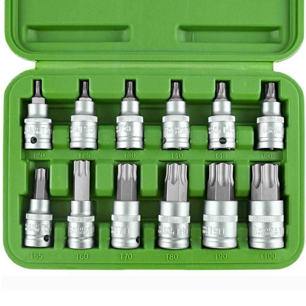 Coffret très complet de 12 douilles Torx T20 à T100.