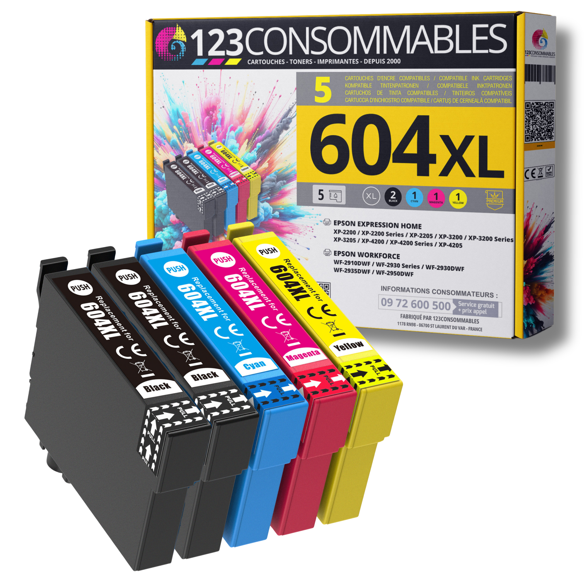 | Libellé | 123CONSOMMABLES - 604XL - Cartouches Encre Compatible avec Epson 604 XL pour Expression Home XP-2200 XP-3200 XP-4200, Workforce WF-2910 WF-2930 WF-29 |