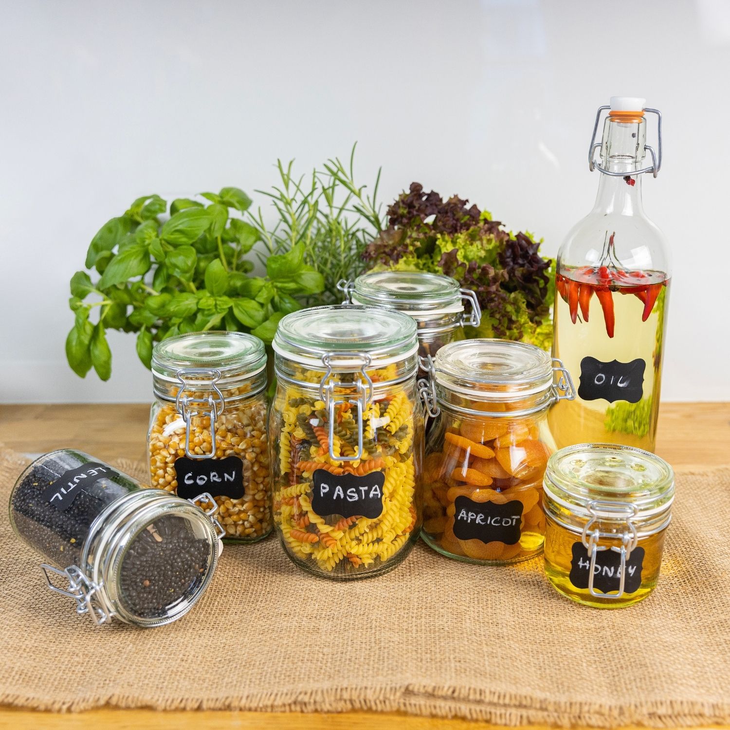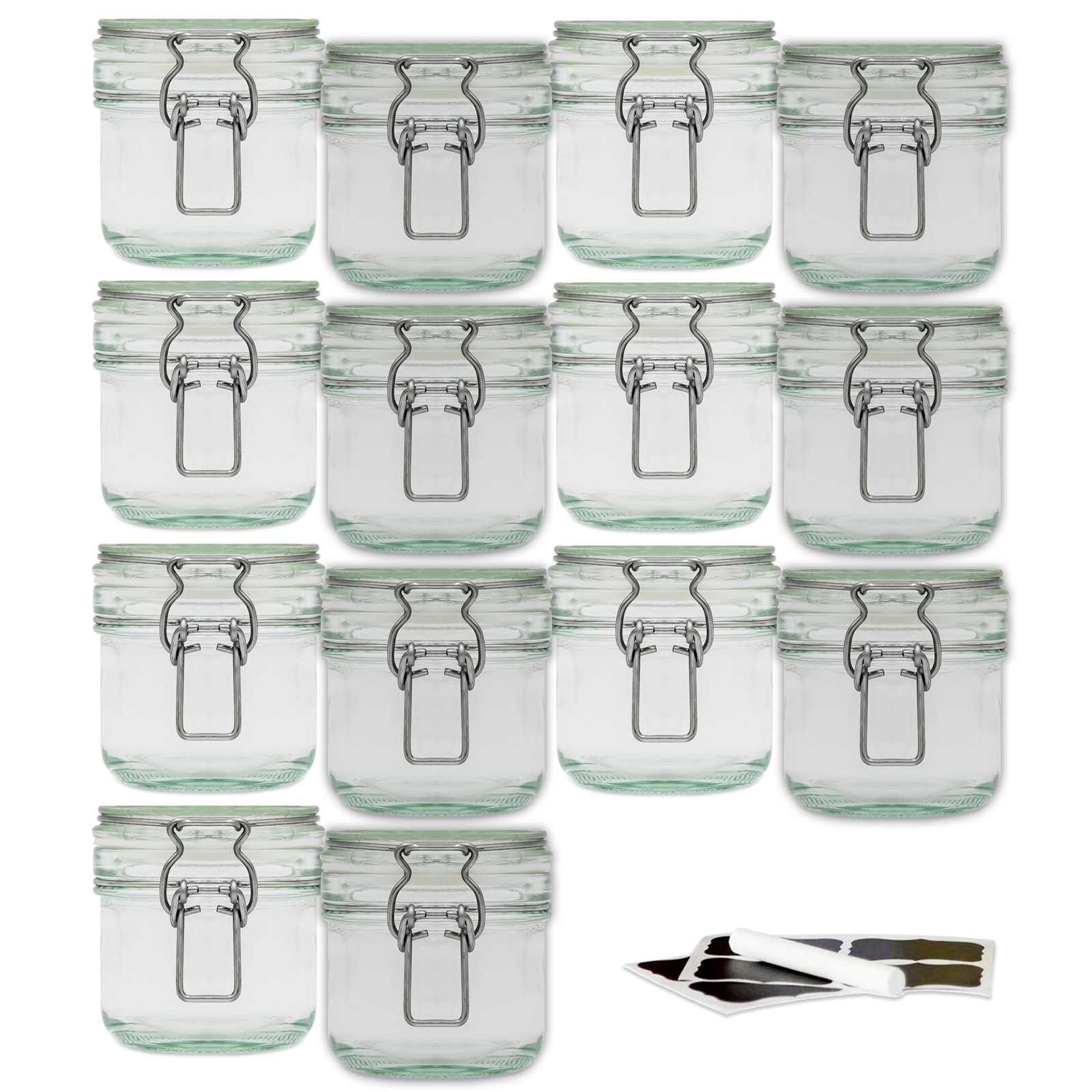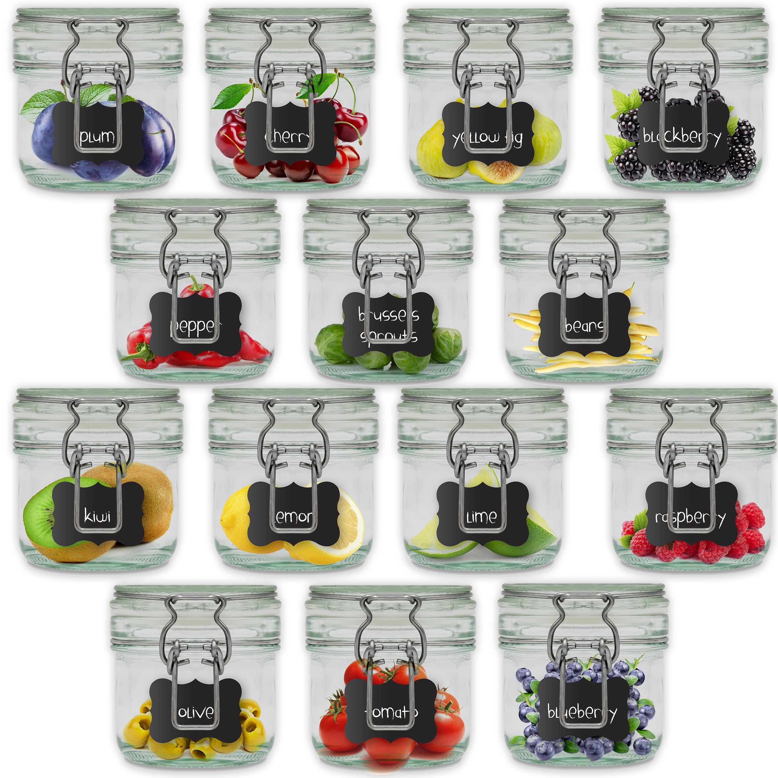 ENSEMBLE PARFAIT – Notre set de 14 bocaux de 0,2 L est idéal grâce au grand joint hermétique en silicone assure qu'aucun air n'entre ou ne sort du pot, préservant ainsi la fraîcheur, la saveur et l'arôme des aliments qui sont conservés dans les bocaux. Le set contient les autocollants réutilisables et la craie pour étiqueter les aliments stockés, donc le produit crée un accessoire attrayant pour la cuisine et la maison. MULTIPLES UTILISATIONS - Les bocaux sont parfaits pour stocker biscuits, sucre, céréales, cannelle, herbes, épices, cornichons, miel, graines, thé, café, chocolat, spaghetti, graines de café, thé, confiture, pâtes, produits de boulangerie ou friandises pour chiens. Ils peuvent être utilisés pour stocker des articles non alimentaires tels que des pièces de monnaie,des petits objets, des bobines, des jouets et des accessoires. DÉCORATION DE CUISINE – Ces bocaux sont non seulement utiles, mais aussi jolis dans votre cuisine grâce au design unique. Vous ne devez plus cacher vos produits dans les placards – vous pouvez afficher votre nourriture car le verre transparent vous permet de voir le contenant du pot pour un accès rapide et facile. CONCEPTION PRATIQUE - Un verre certifié européen solide combiné à un levier en métal bien construit et bien ajusté génère une expérience sans frustration lors de l'ouverture et de la fermeture du pot qui empêche l'usure à long terme et la formation de déchirures, prolongeant ainsi la durée d'utilisation des pots.