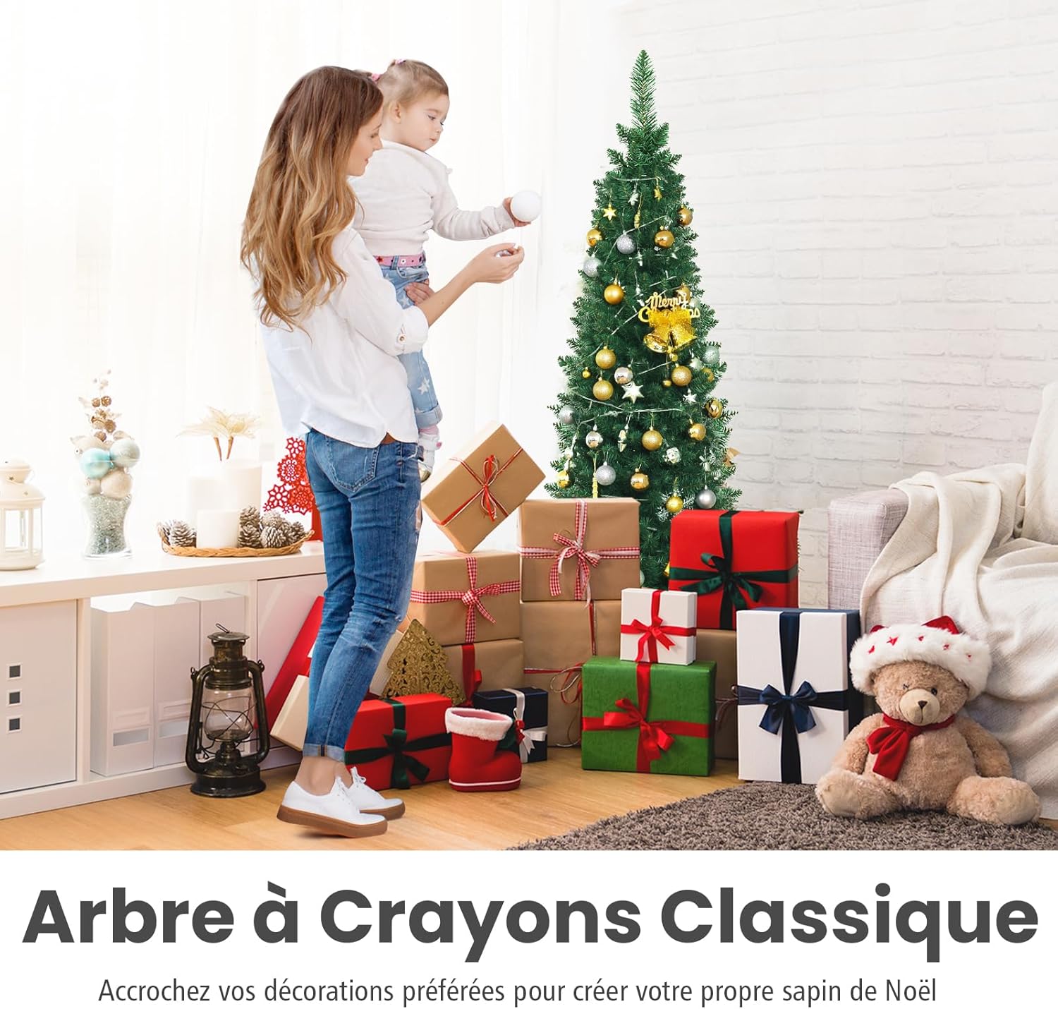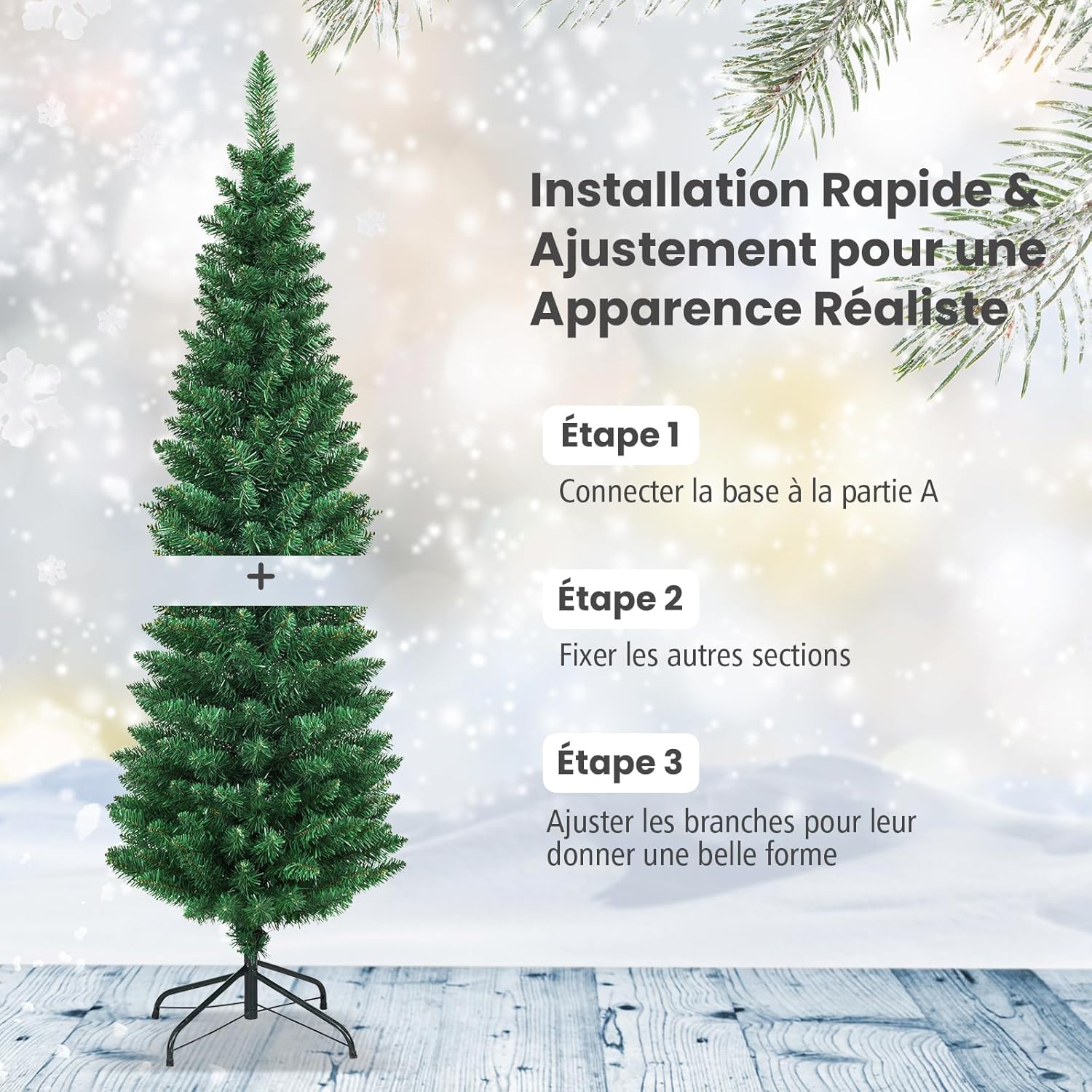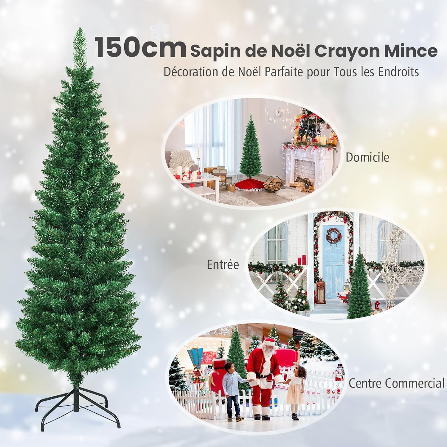 | Libellé | 150cm sapin de noël artificiel forme crayon réaliste, sapin de noel pvc ignifuge construction solide,vert |