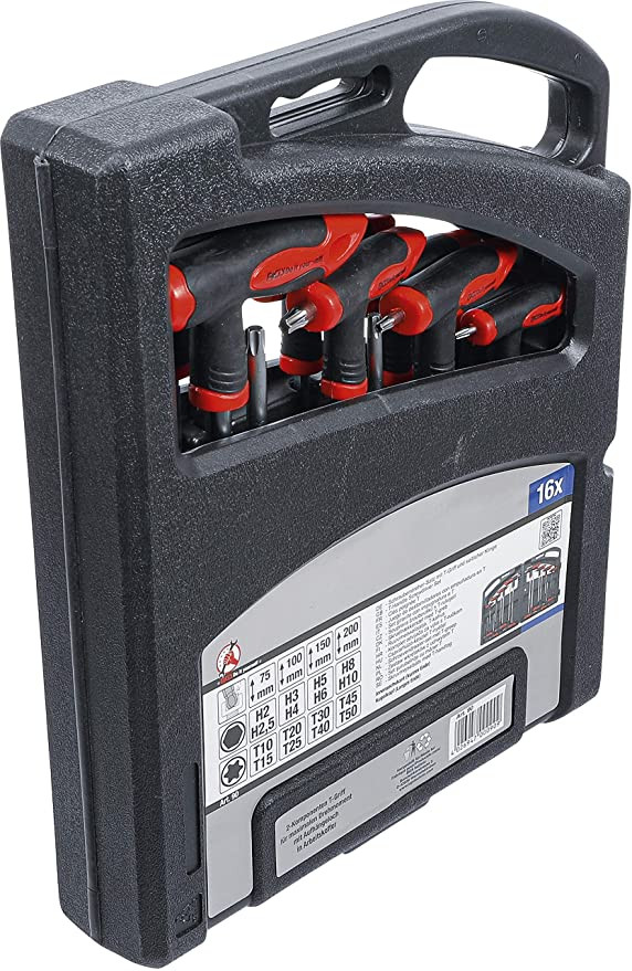 | Libellé | 16 TOURNEVIS POIGNEES CLES MALES EN T - TORX/RESISTORX T10/T50 - 6 PANS 2/10 MM |