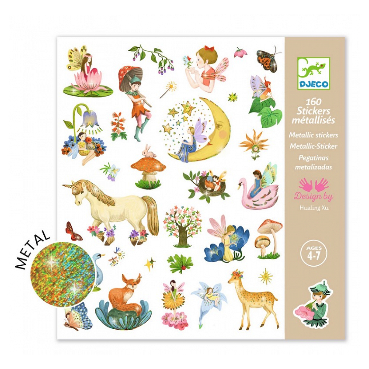Plus produit Une pochette de 160 stickers métallisés sur le thème de la fantasy. Lutins, fées, licorne et esprits de la forêt… Bienvenue dans un univers fantastique. L'enfant colle les nombreux stickers librement pour composer ses propres saynètes ou décorer ce qu'il souhaite !