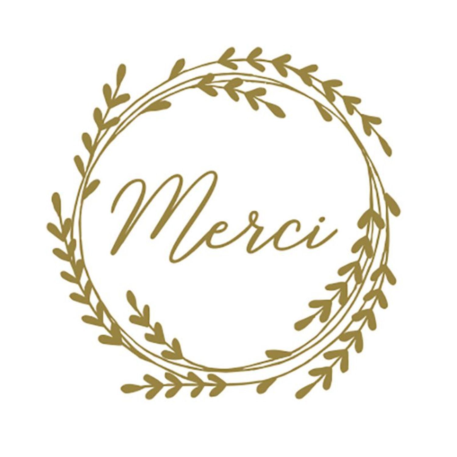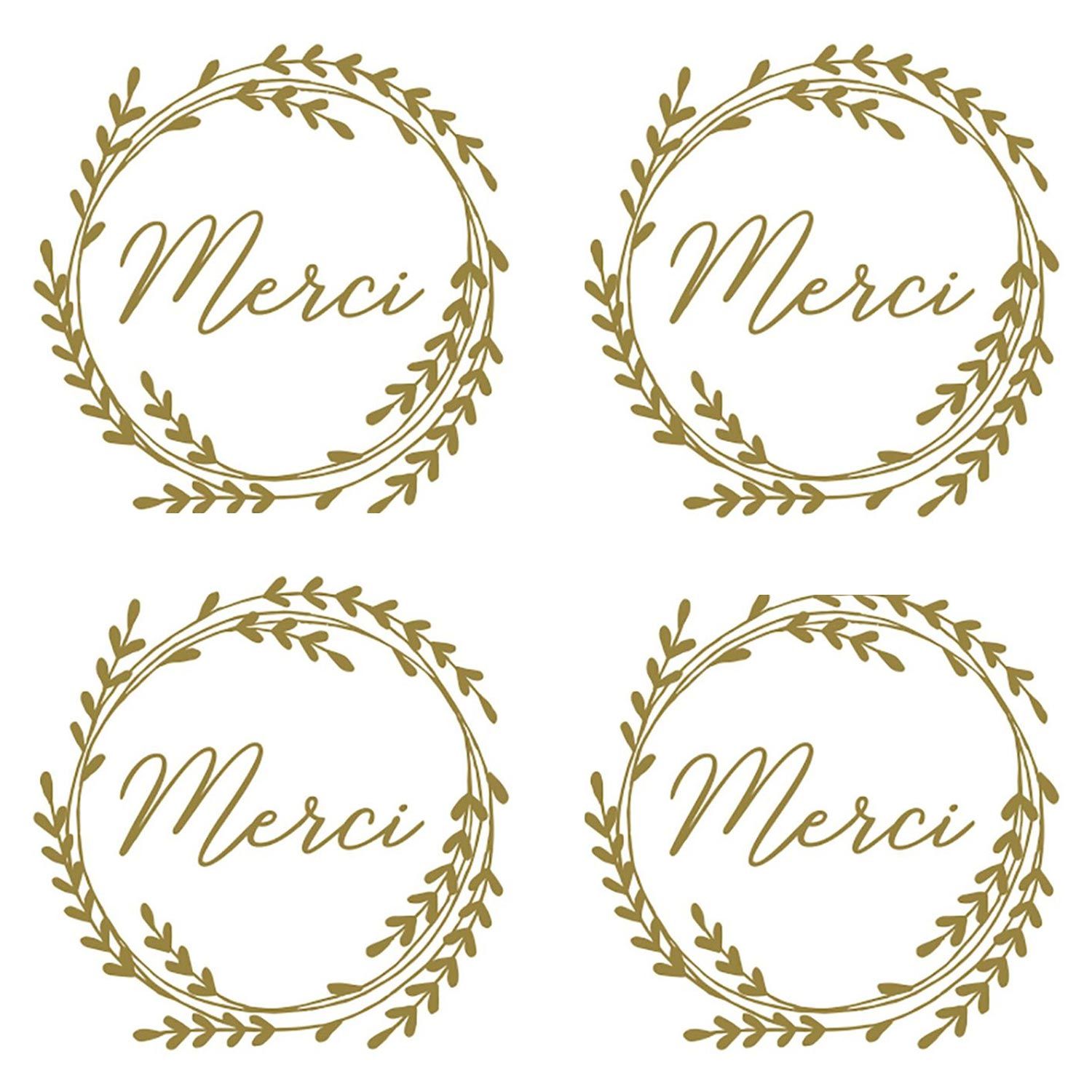 Libellé 180 stickers ronds dorés Merci diam. 3,5 cm