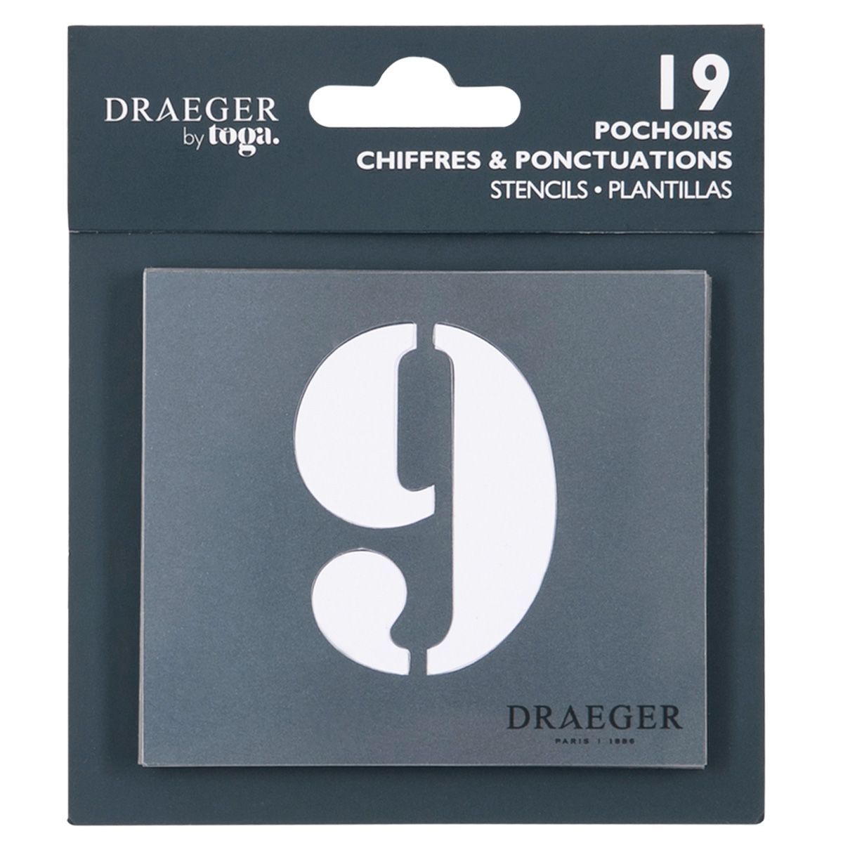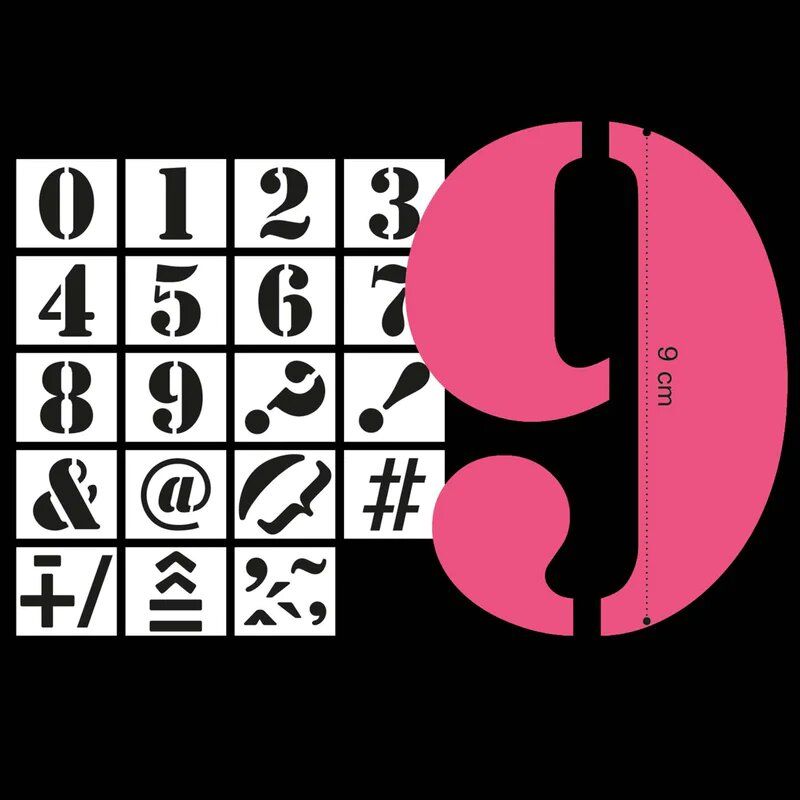19 pochoirs représentant les 10 chiffres et les signes de ponctuation. Les pochoirs sont multi-usages : ils servent à tracer et à colorier. Nous proposons également un format plus petit de pochoirs chiffres et signes de ponctuation (5 cm de hauteur). Hauteur des chiffres: 9 cm / Largeur des chiffres : 6,5 cm. S'utilisent avec un stylo, crayon, feutre, encre, peinture. Pour l'utilisation du pochoir avec de la peinture, utiliser une brosse/pinceau ou une peinture à bâton. Ne pas utiliser de peintures en bombe qui contiennent des solvants qui peuvent endommager les pochoirs quel que soit leur épaisseur.