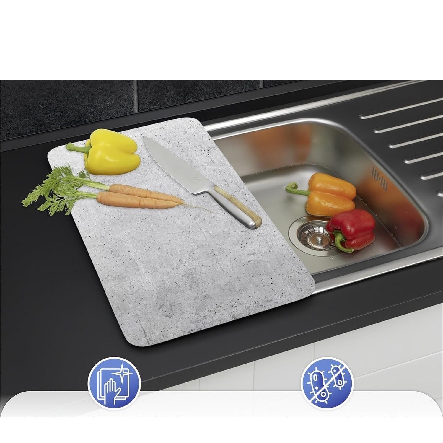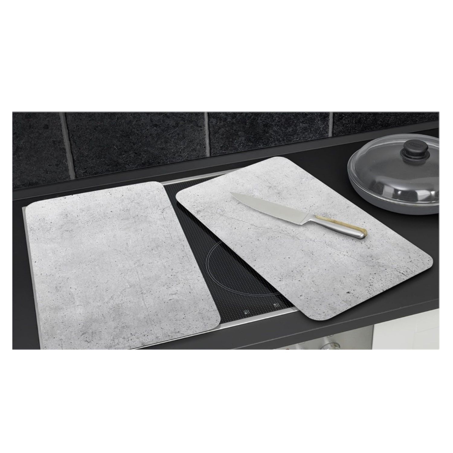 Ce set de deux couvre-plaques imitation béton apporte une protection et assure une fonctionnalité supplémentaire à votre cuisinière. Ces deux plaques protègent la cuisinière de manière fiable qu'il s'agisse d'une cuisinière vitrocéramique, électrique ou à gaz. En plus de protéger vos plaques, cet accessoire de cuisine élégant peut également servir de planche à découper pour préparer des repas ou pour déposer des casseroles et des poêles chaudes. Ainsi, vous agrandissez facilement votre plan de travail tout en protégeant vos plaques vitrocéramiques, électriques ou à gaz.