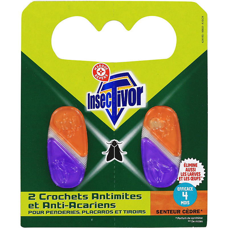 2 crochets gel antimites et anti-acariens senteur cèdre - INSECTIVOR