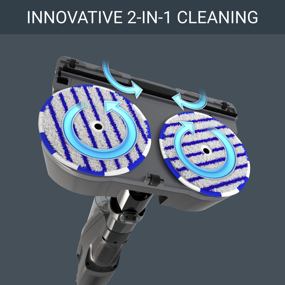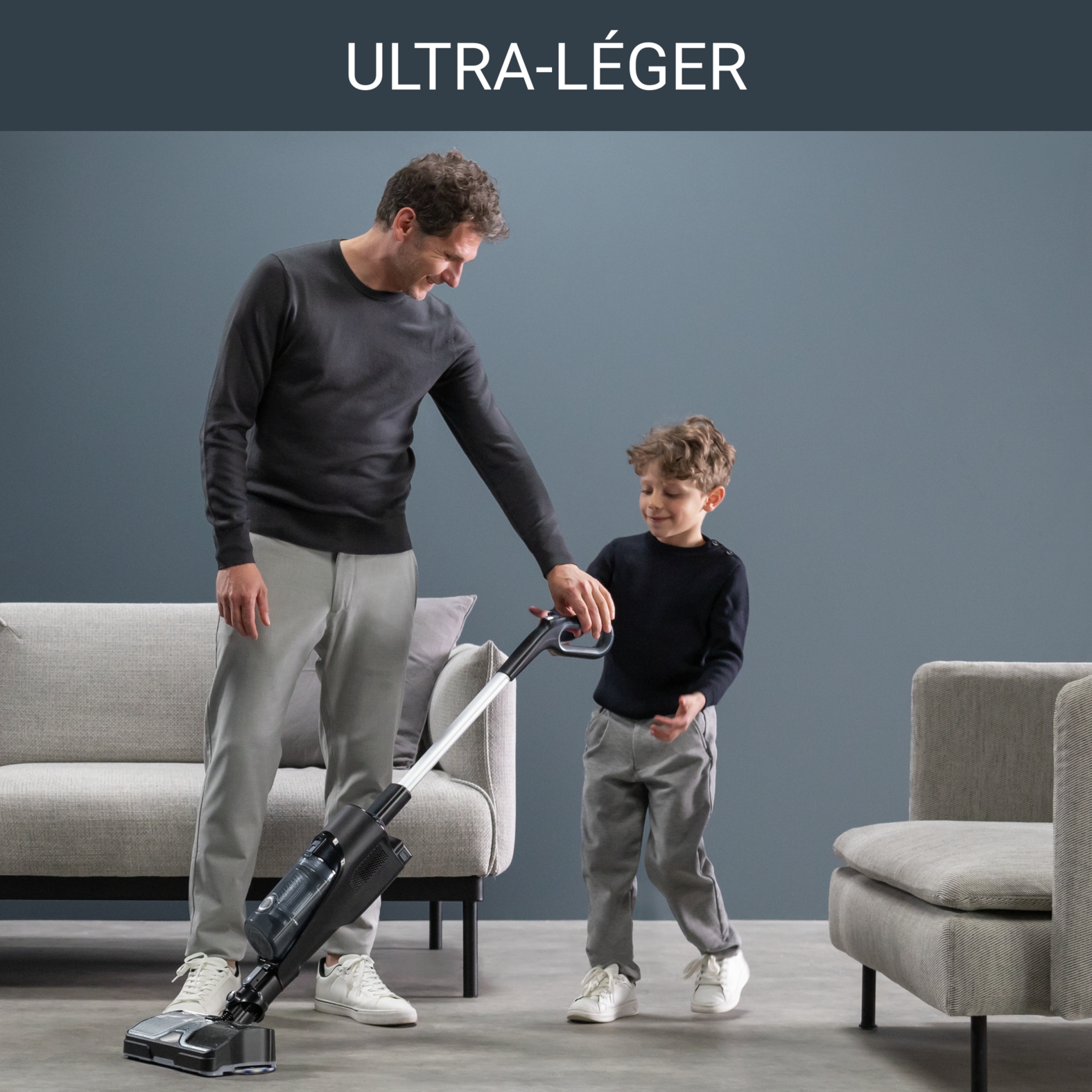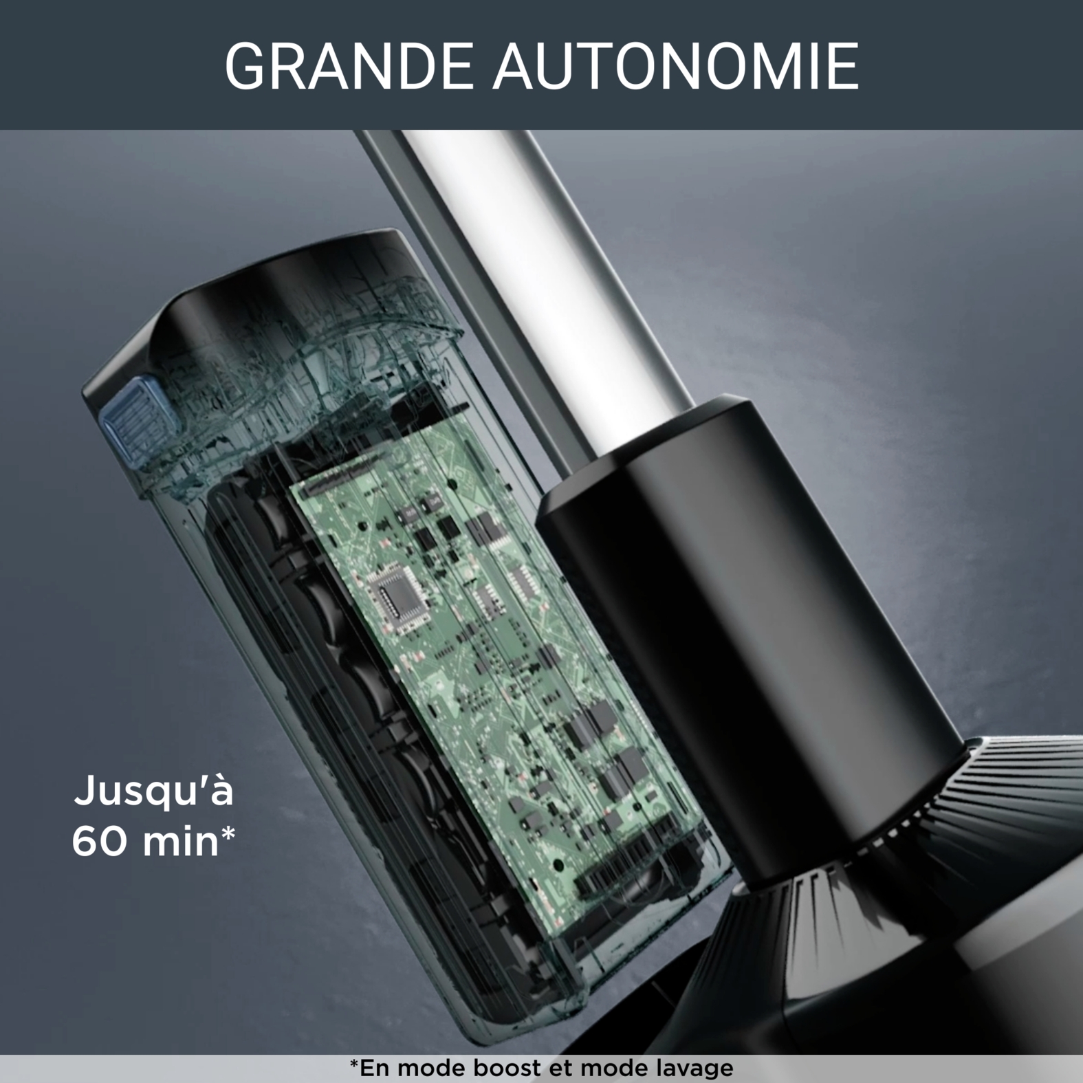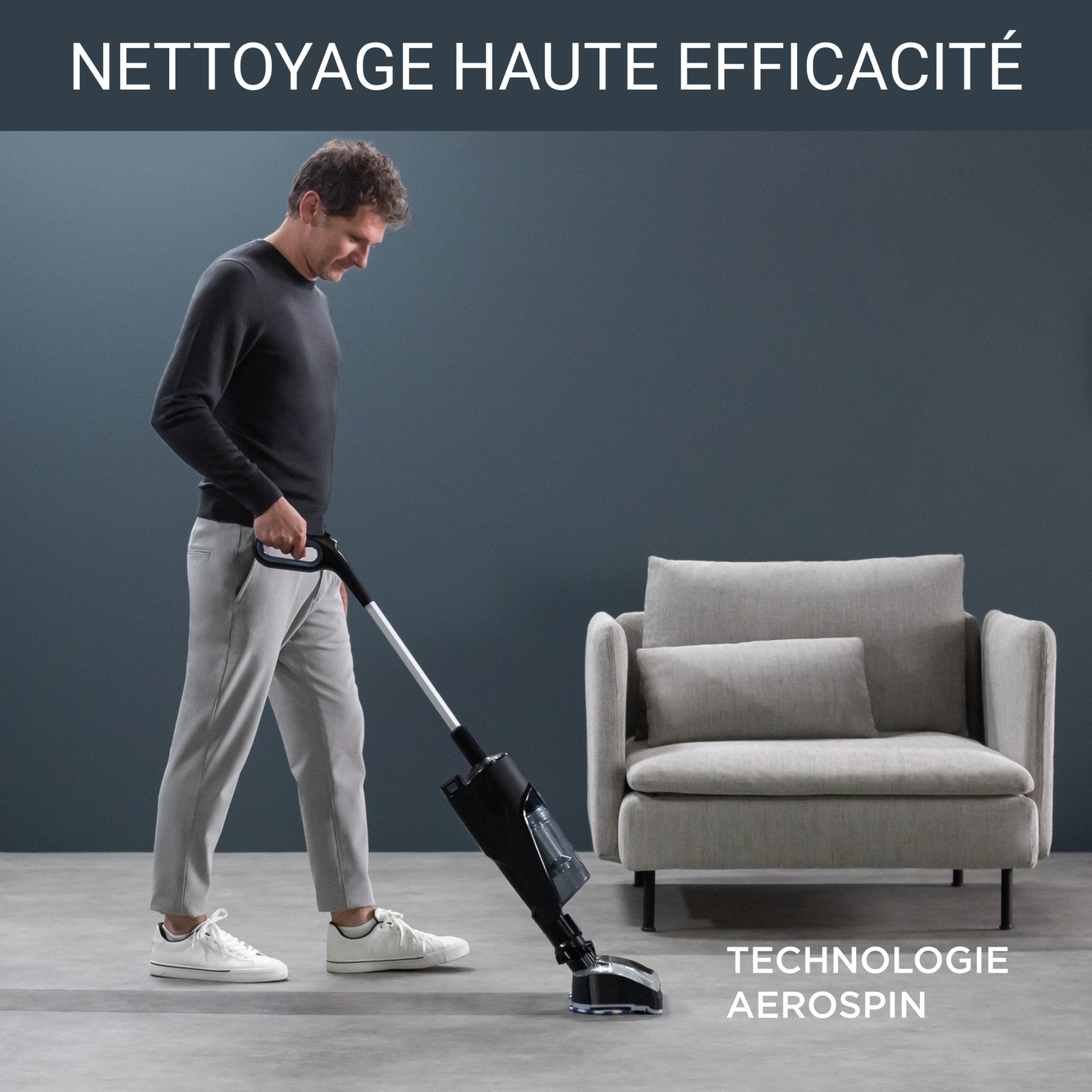 Découvrez un appareil 2-en-1 unique et très efficace, conçu pour un dépoussiérage et un lavage du sol simultanés ; la durée de vos sessions de ménage est réduite de moitié grâce à un format sans fil pratique qui répond à tous vos besoins du quotidien.
