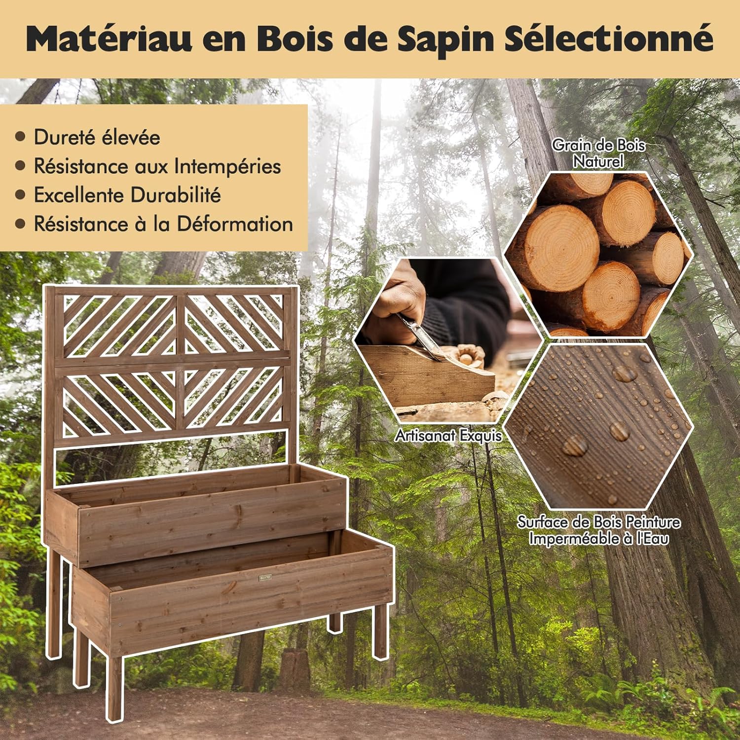 Jardinière surélevée avec treillisdurable fabriqué en bois de sapin naturel