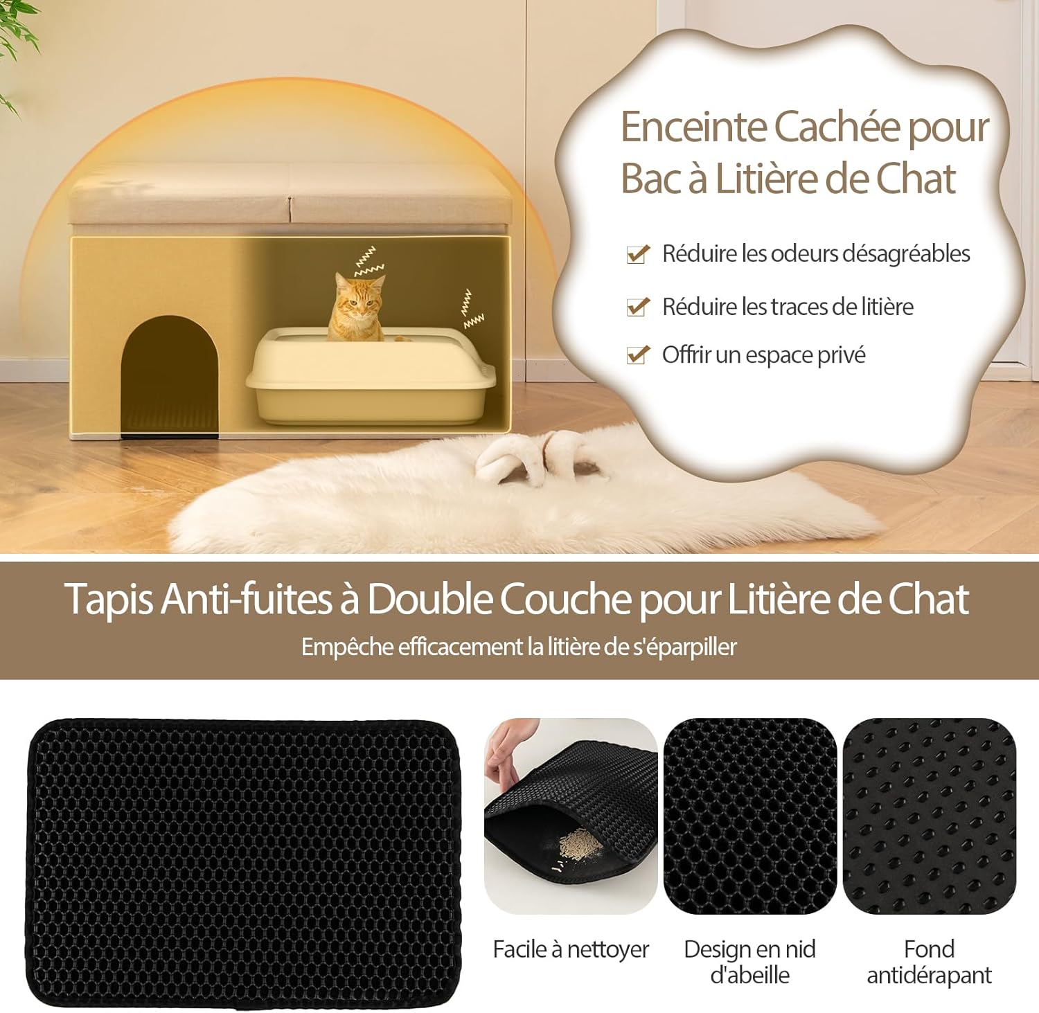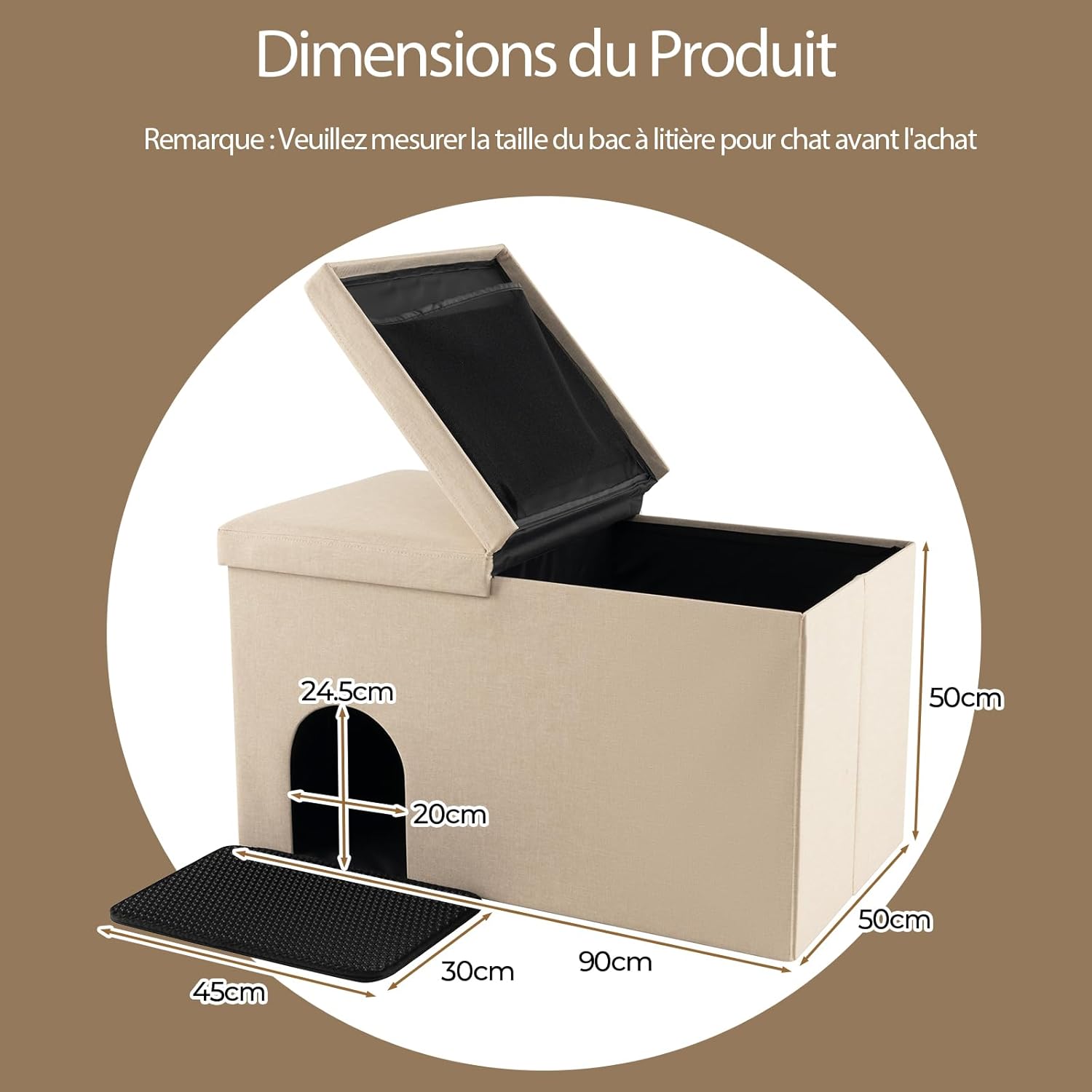 | Libellé | 2 en 1 maison de toilette pour chat, meuble litière caché pliable pour chat avec tapis de litière,beige |