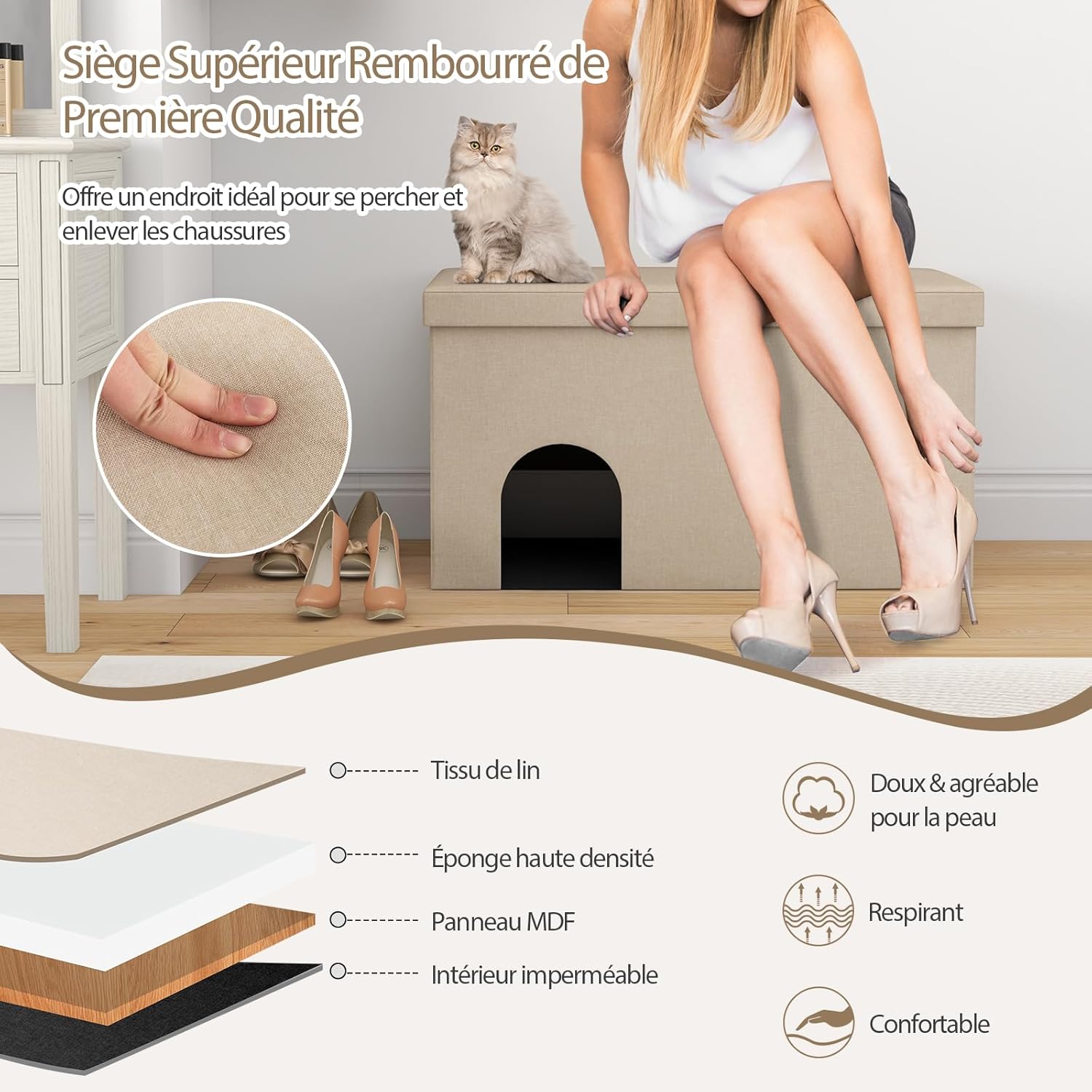 Utilisation polyvalente : bac à litière pour chat/pouf/banc à chaussures/armoire de rangement