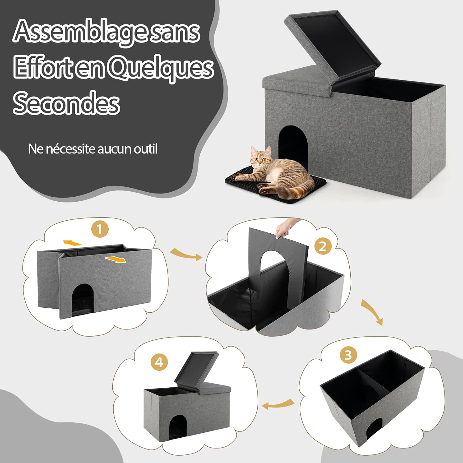 | Libellé | 2 en 1 maison de toilette pour chat, meuble litière caché pliable pour chat avec tapis de litière,gris |