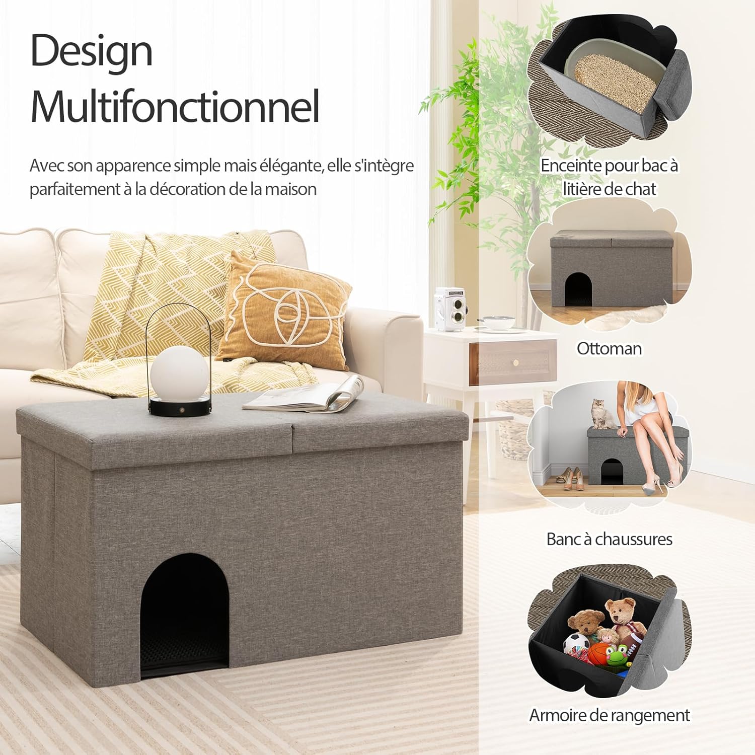 Utilisation polyvalente : bac à litière pour chat/pouf/banc à chaussures/armoire de rangement