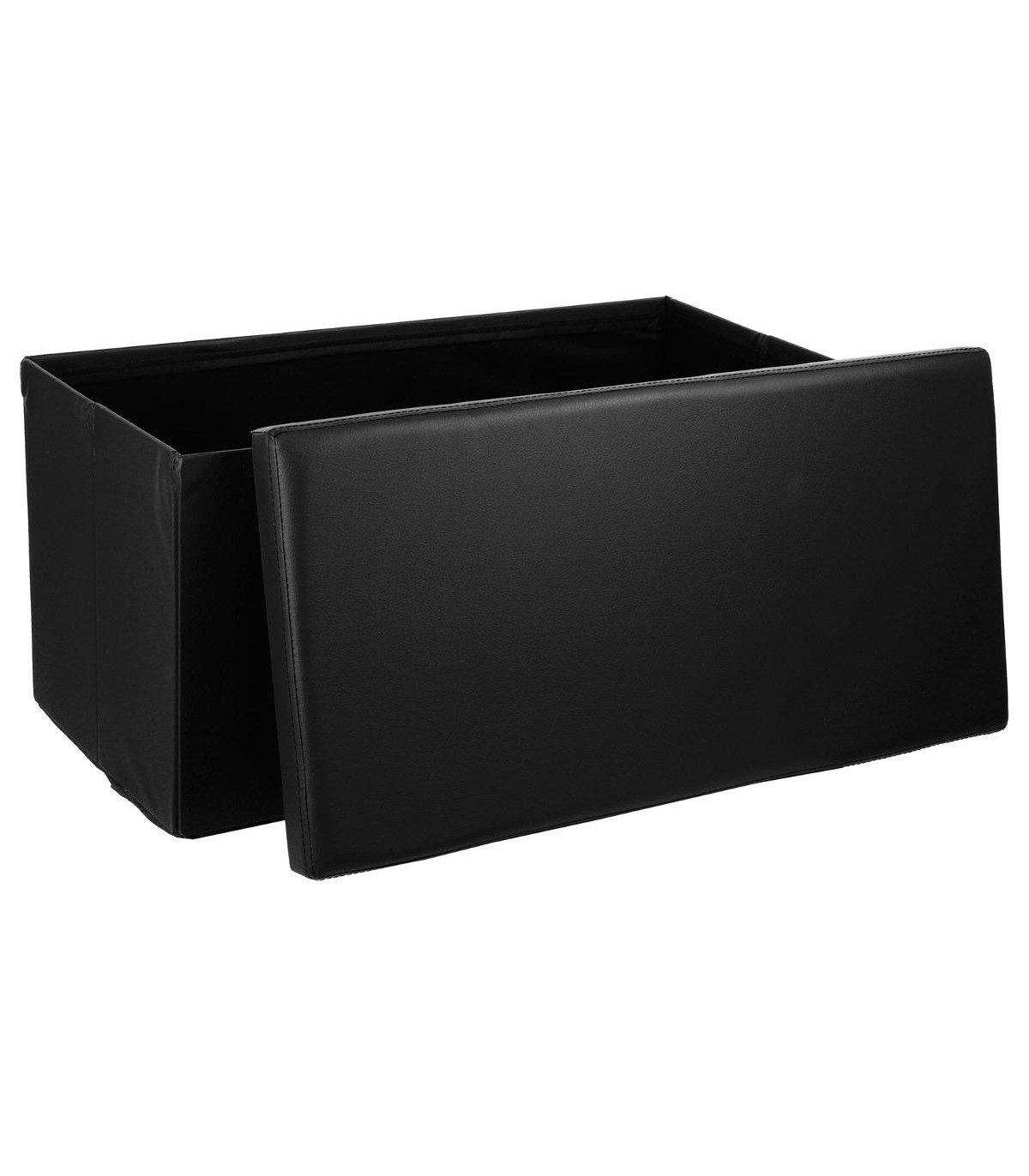 2 en 1 Pouf pliant double et coffre de rangement Vinyle Noir 76.6 x H 37.5 cm --