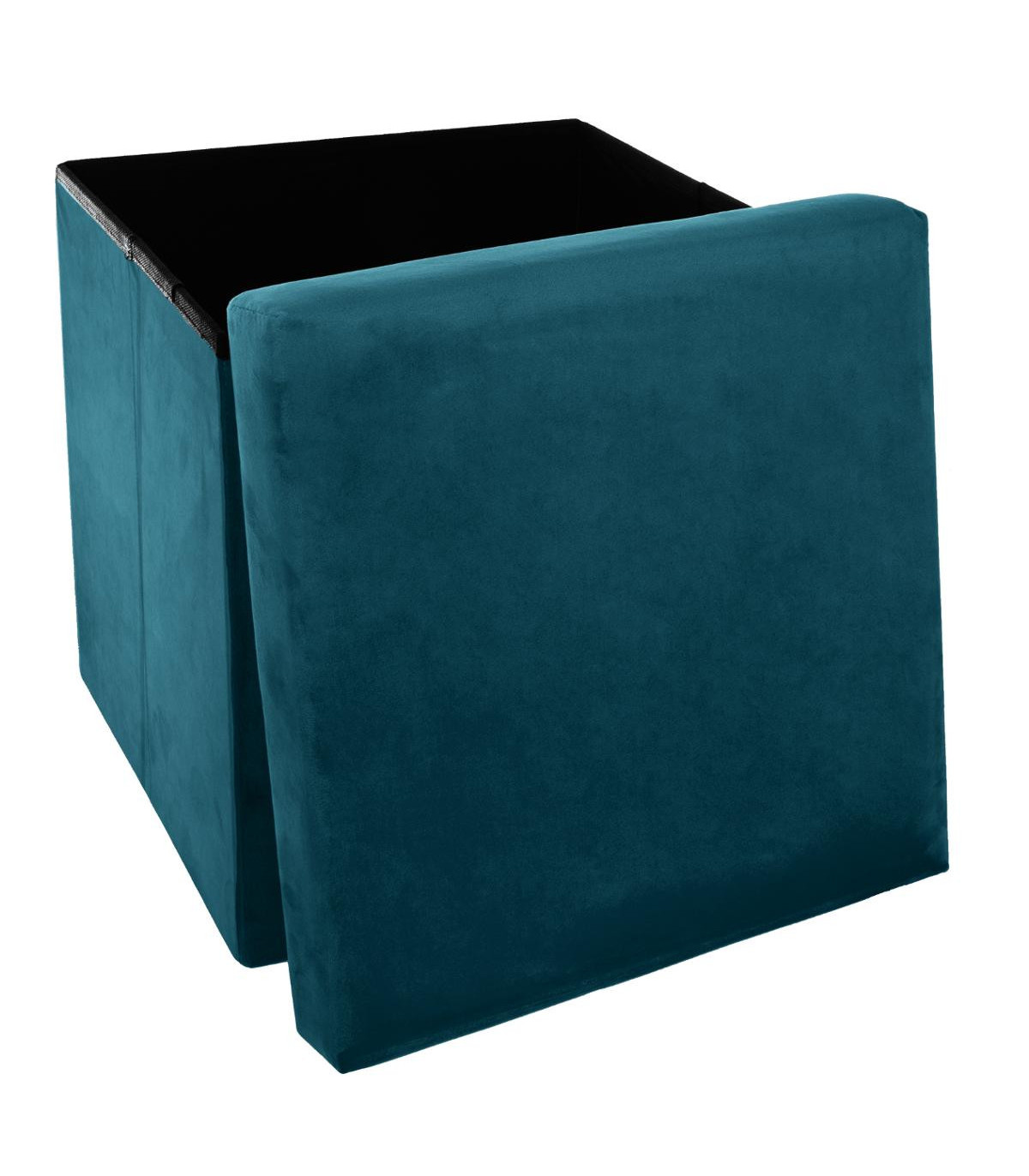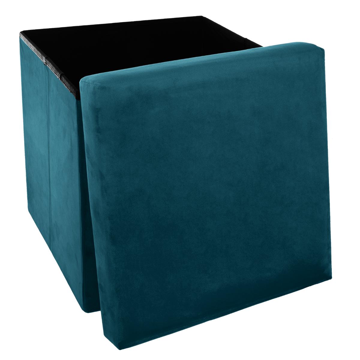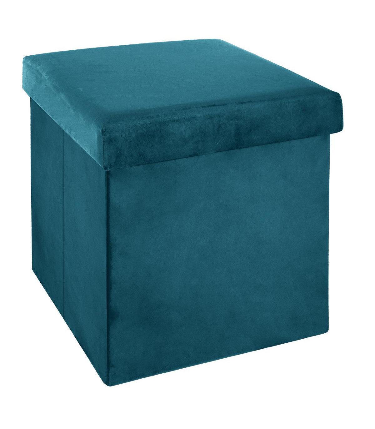 2 en 1 Pouf pliant et coffre de rangement Velours Bleu canard 38 x 38 cm --