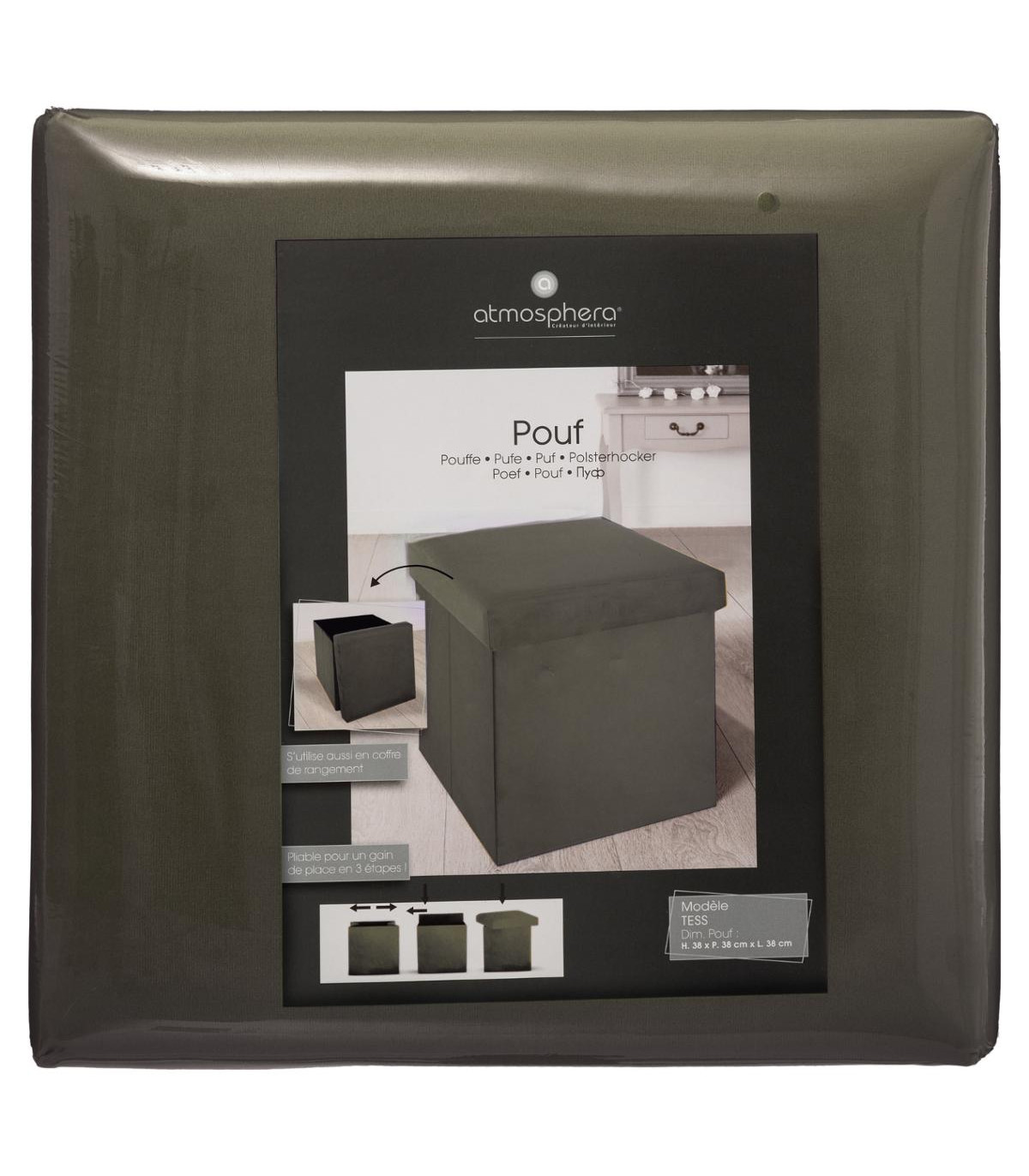| Libellé | 2 en 1 Pouf pliant et coffre de rangement Velours Kaki 38 x 38 cm |