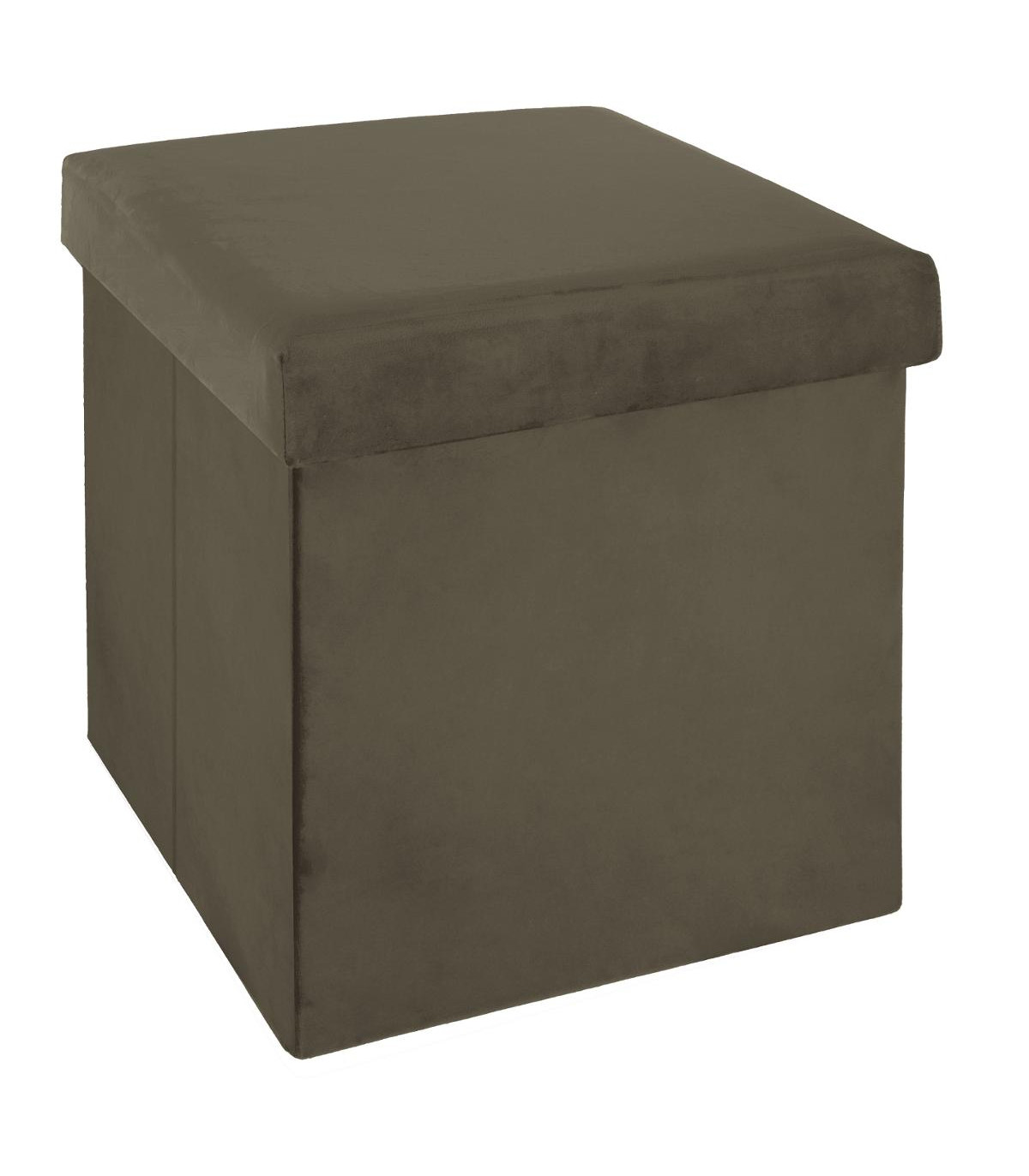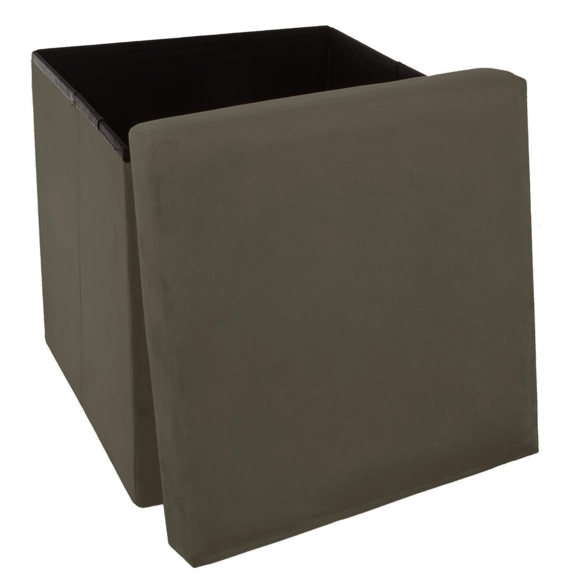 2 en 1 Pouf pliant et coffre de rangement Velours Kaki 38 x 38 cm --